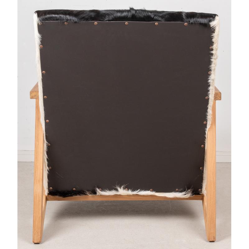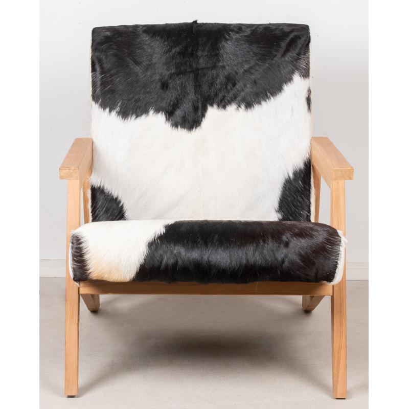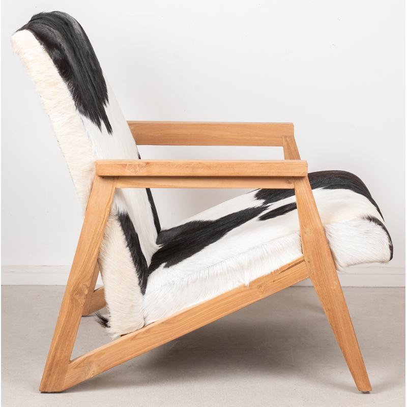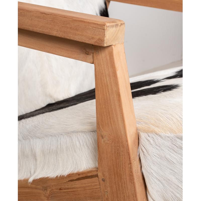 Armchair in teak and 100% natural goatskin.