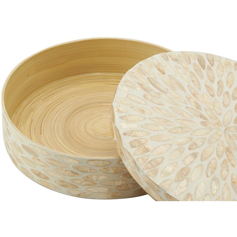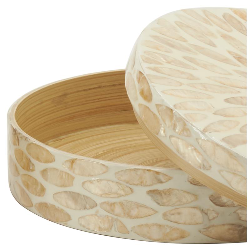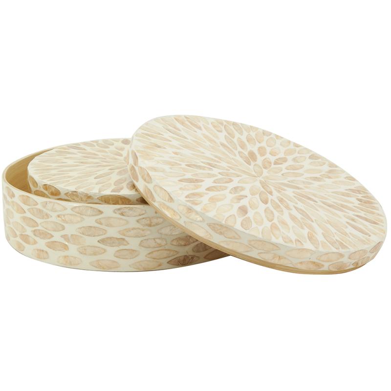 Set of 2 white bamboo boxes decorated with natural mother-of-pearl.