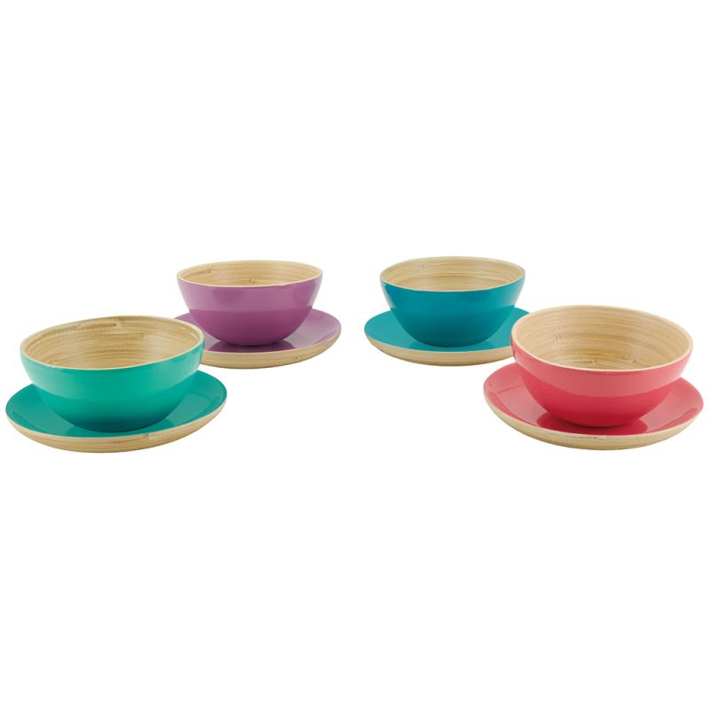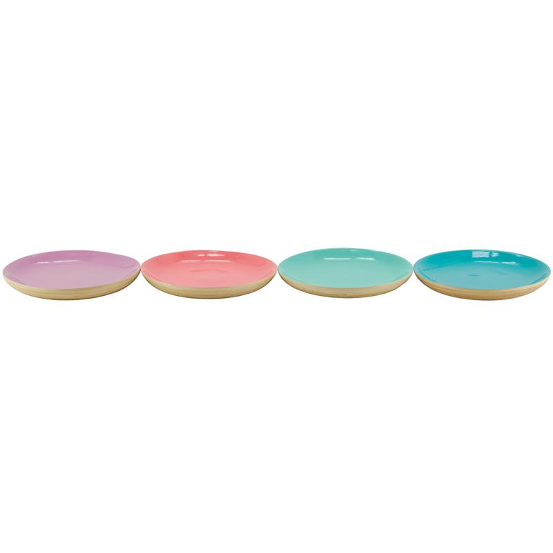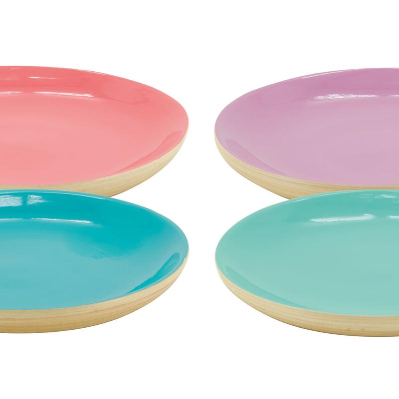 Bamboo tray, 4 assorted colors. Lacquered interior, natural exterior.