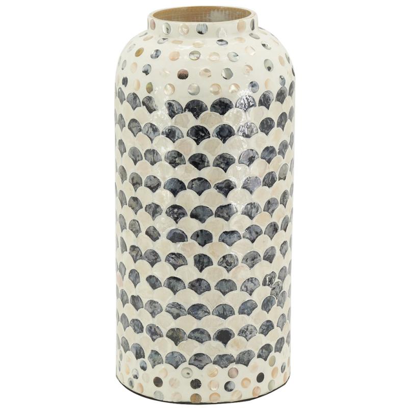 Bamboo vase with black-and-white mother-of-pearl decoration; perfect for dried flowers