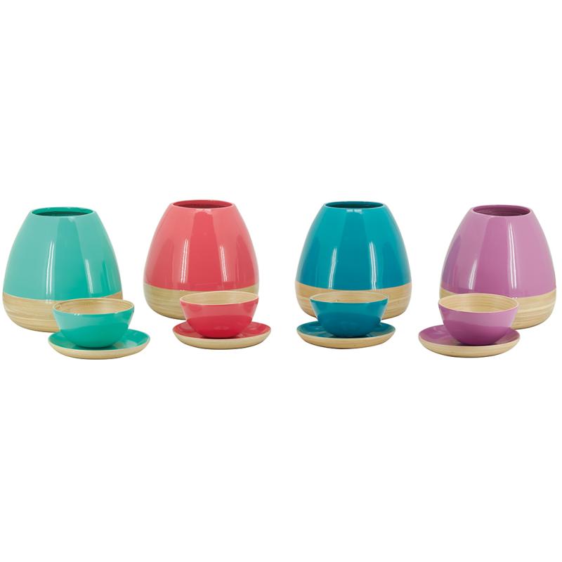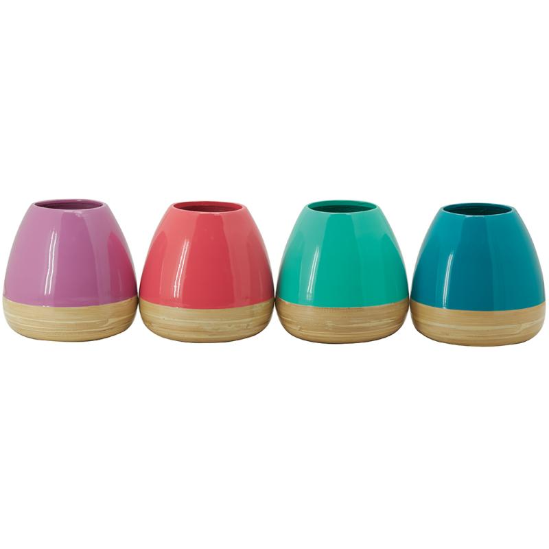 Vase made of natural bamboo and lacquered bamboo - 4 assorted colors. Perfect for dried flowers