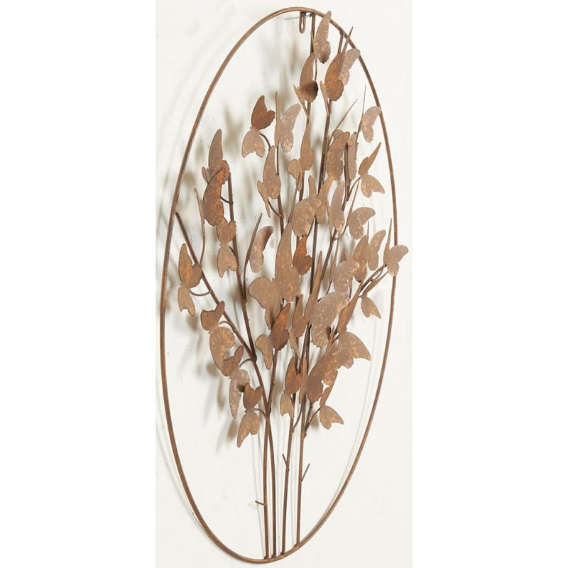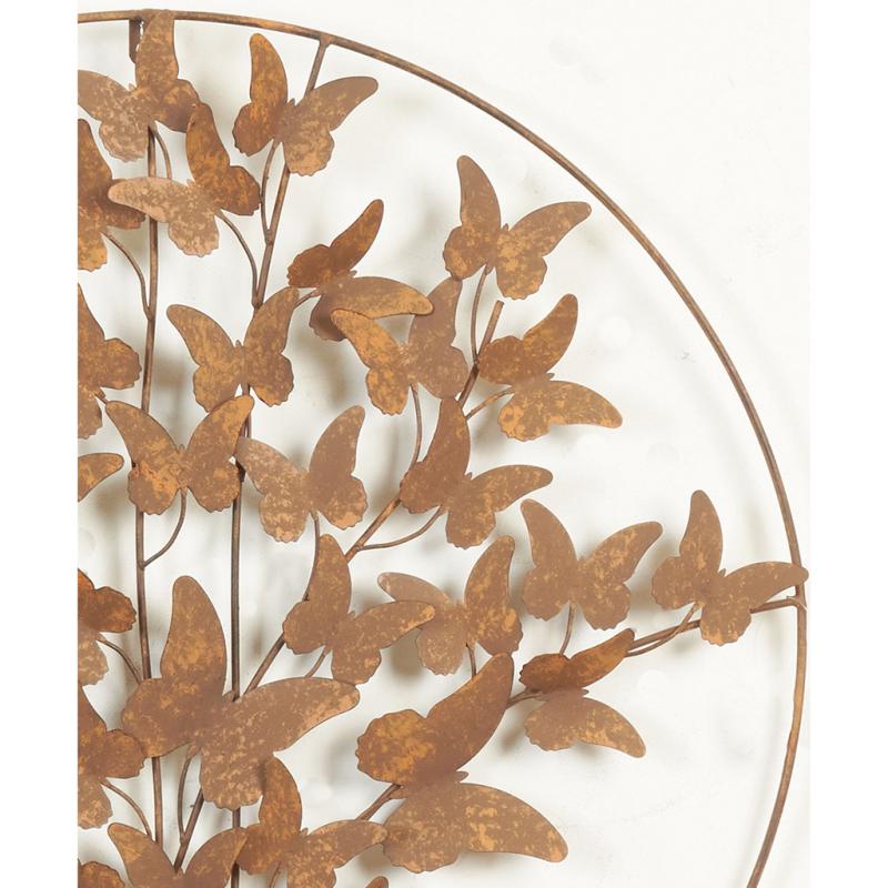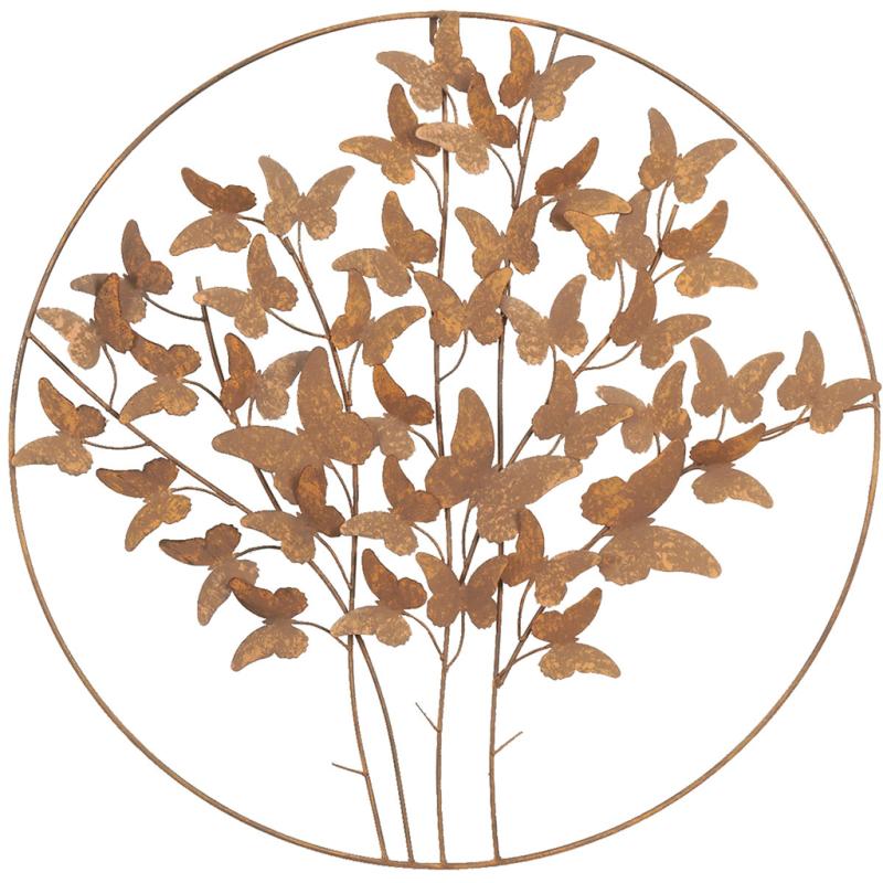 Round wall decoration made of vintage metal, butterfly design