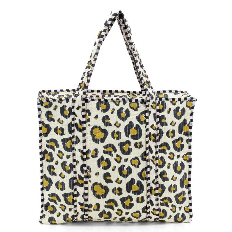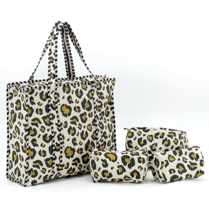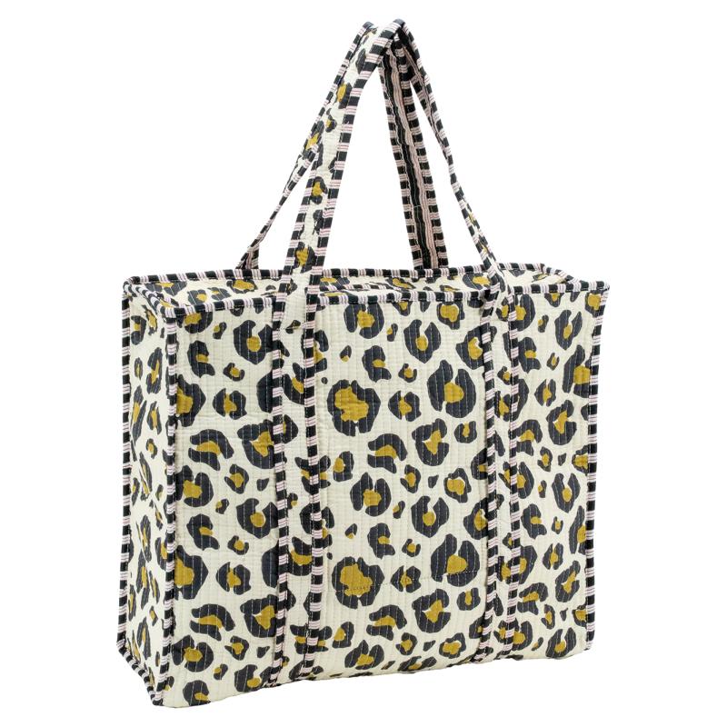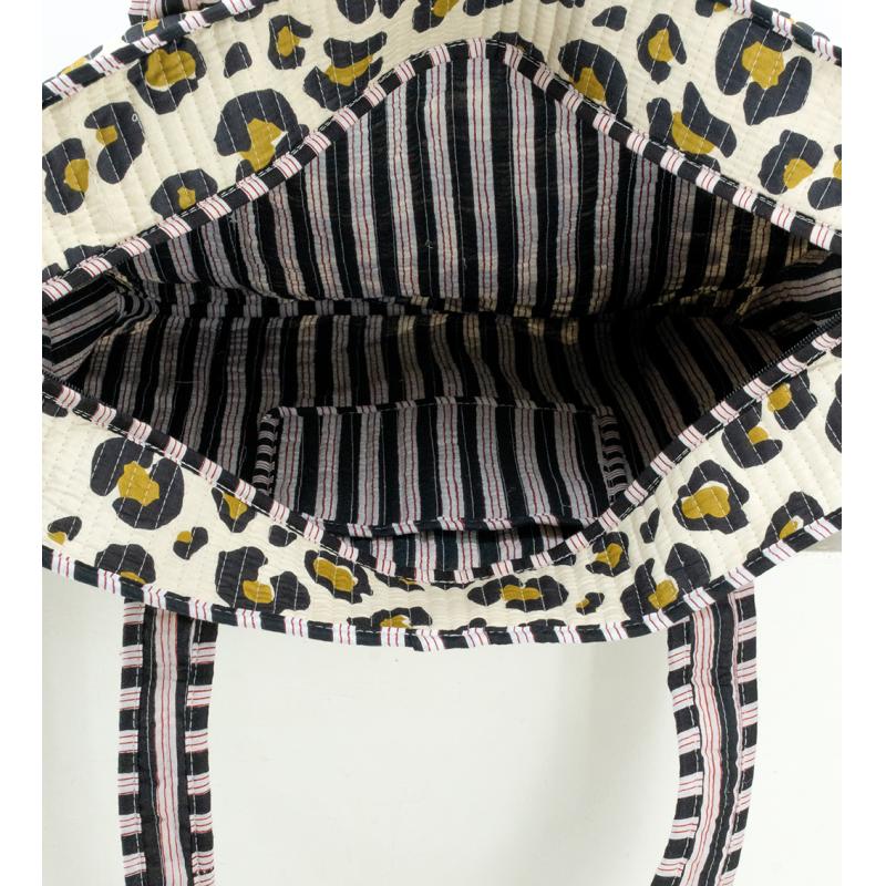 Cotton and nylon bag with leopard print Zipper closure, inside pocket