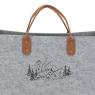 Log bag in grey felt with mountain design. With 2 handles in polyurethane