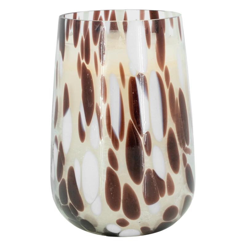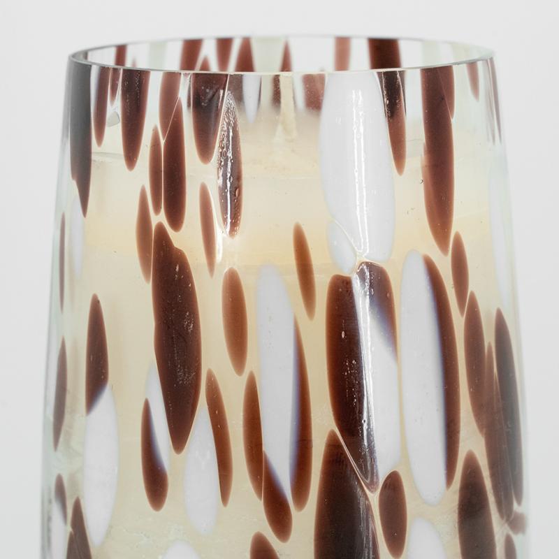 Glass candle, brown and white design Vanilla scented candle