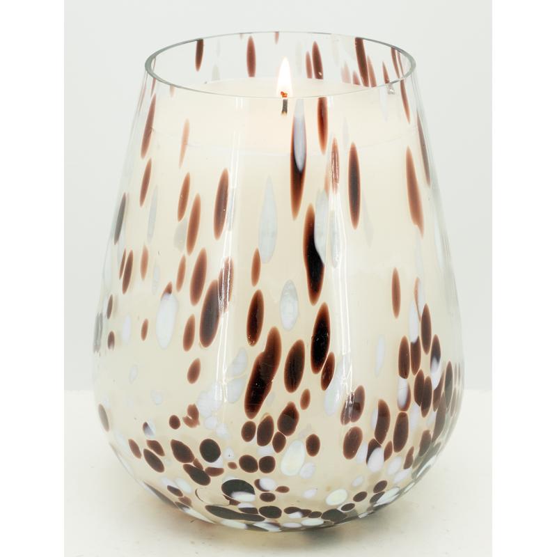 Brown and white glass candle Vanilla scented candle