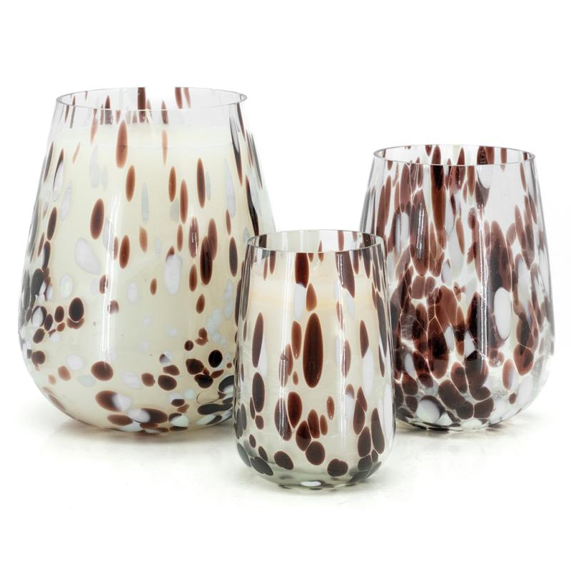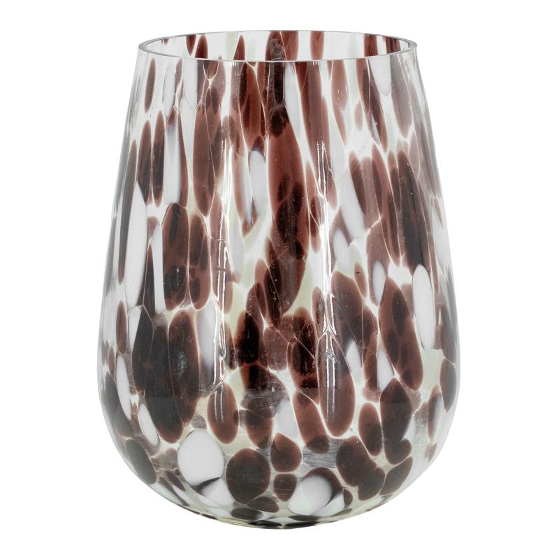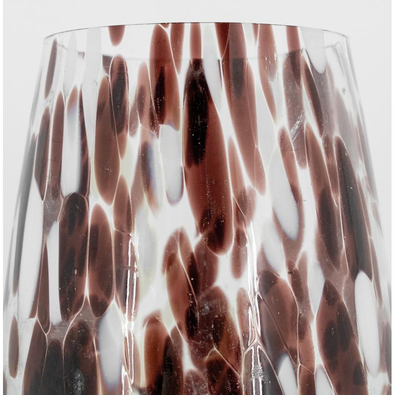 Glass candle holder, brown and white decoration
