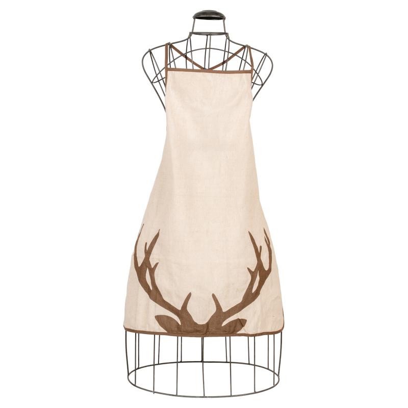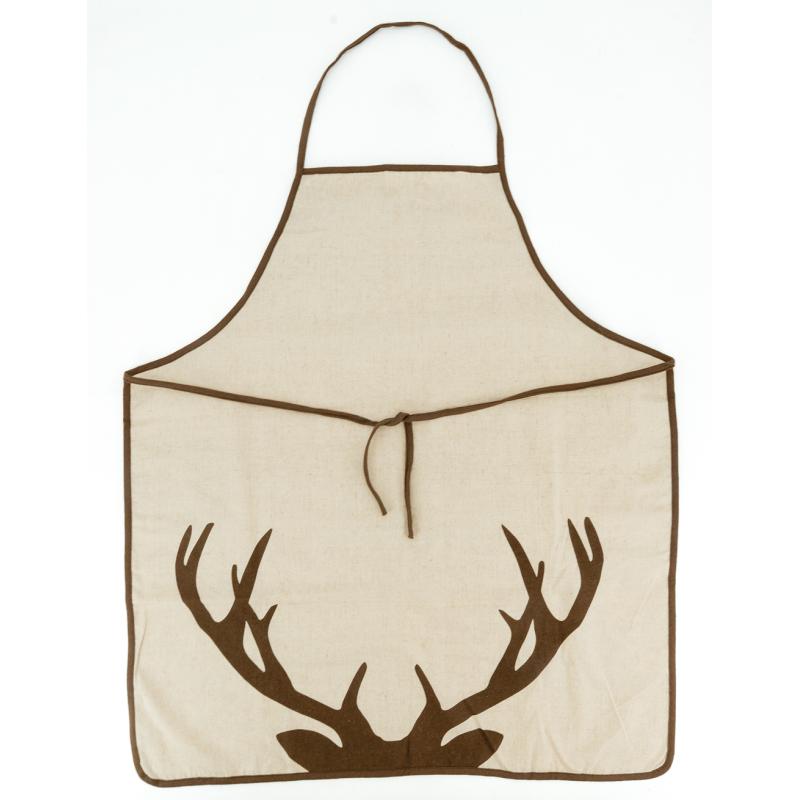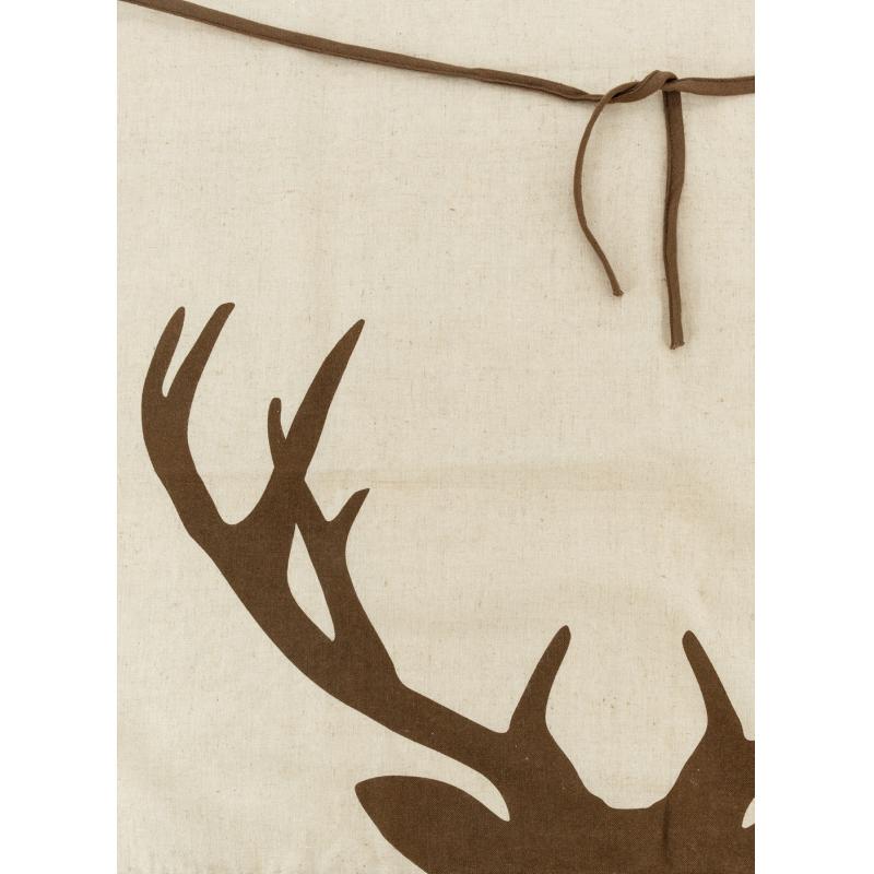 Linen and cotton apron, deer print pattern With brown edging and cords