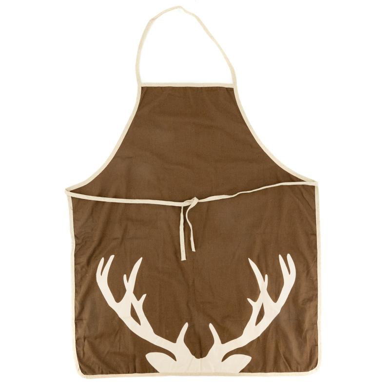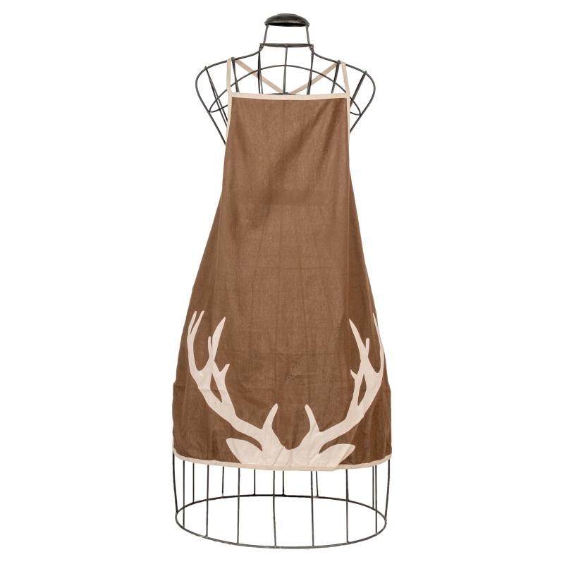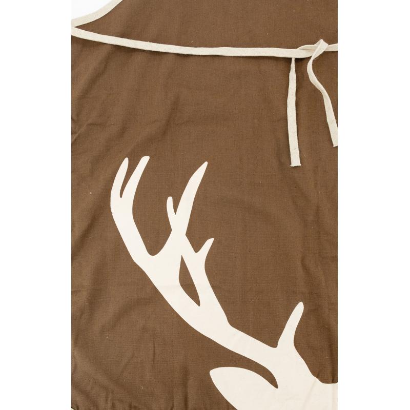 Linen and cotton apron, deer print pattern With beige edging and cords