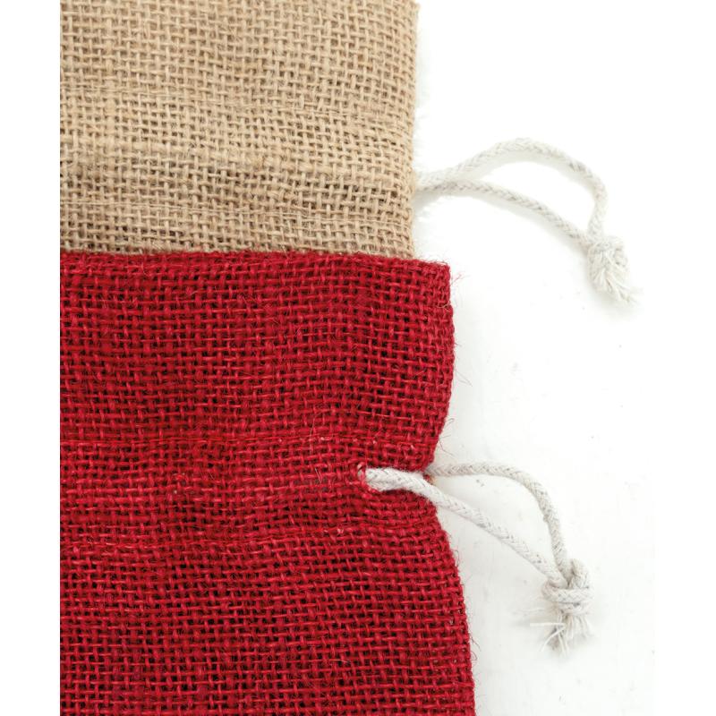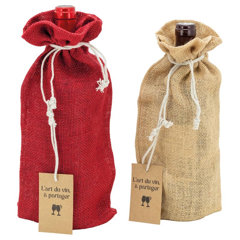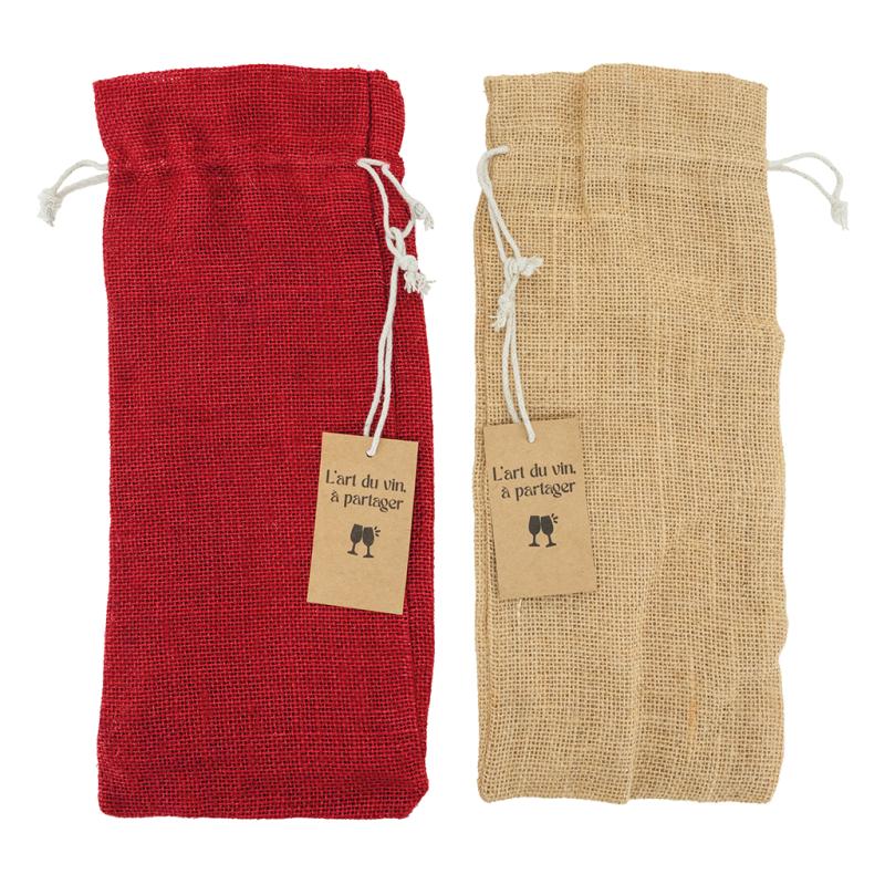 Set of 12 jute bottle bags. 2 assorted colours: natural and red