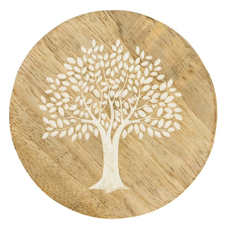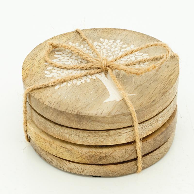 Mango wood coasters, tree of life design. Supplied with rope tie.