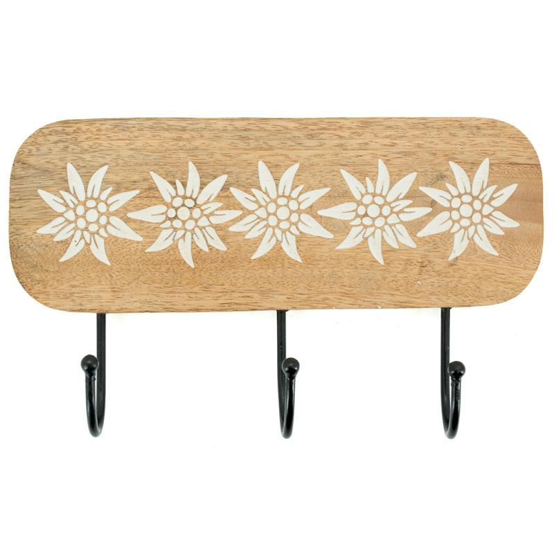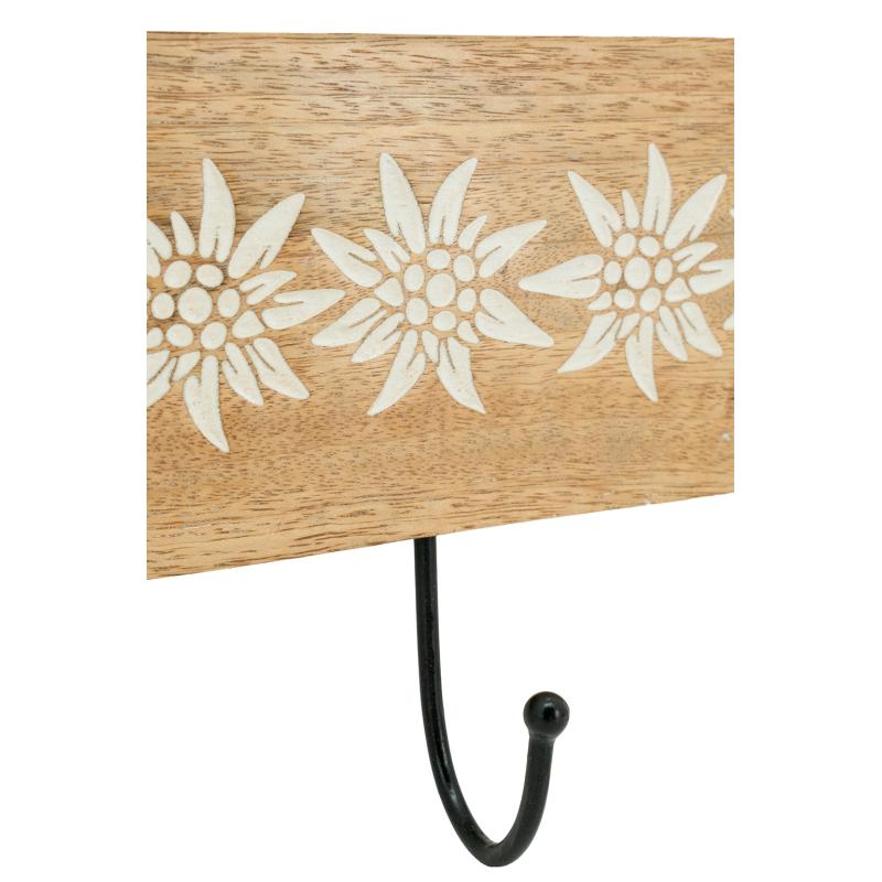 Mango wood coat hook with 3 metal hanging hooks