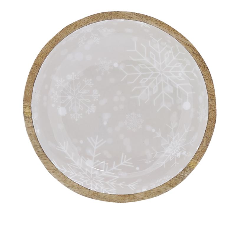 Mango wooden bowl in beige enamel With white snowflakes design