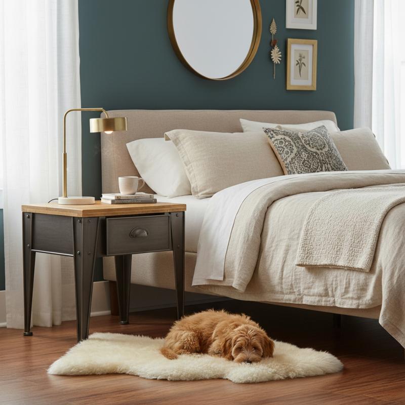 Metal and fir wood nightstand Quantity :