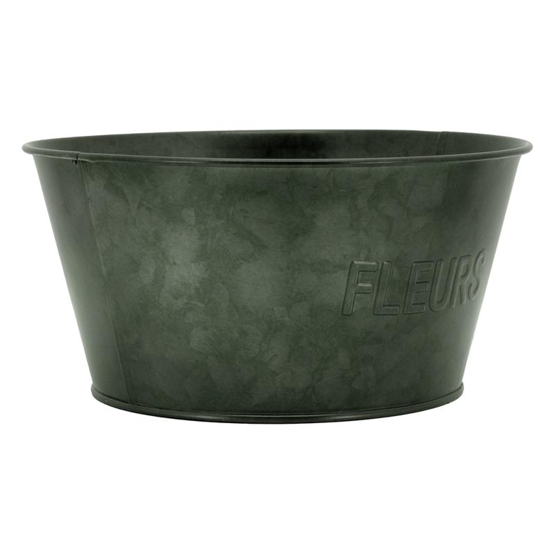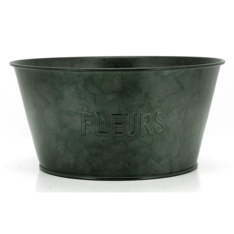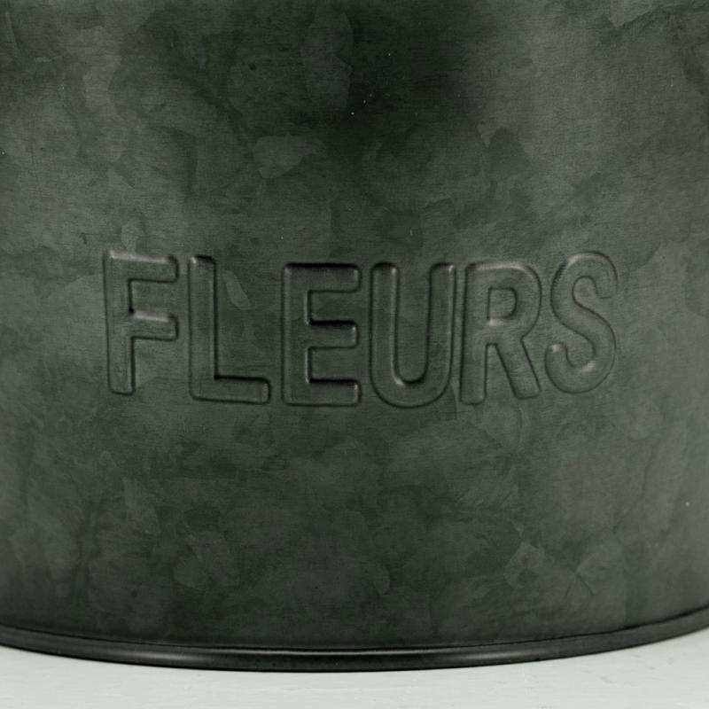 Corbeille en métal noir, inscrit "Fleurs"