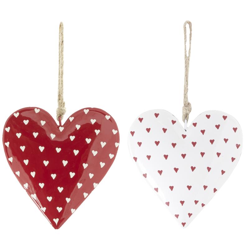 Pack of 2 metal hanging hearts with jute handle.