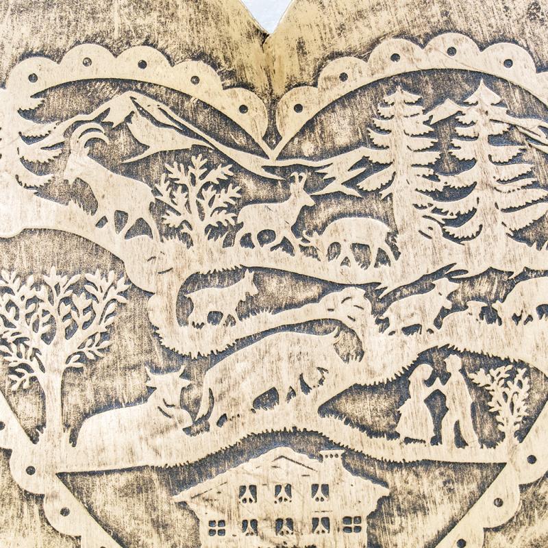 Metal heart-shaped basket, mountain design