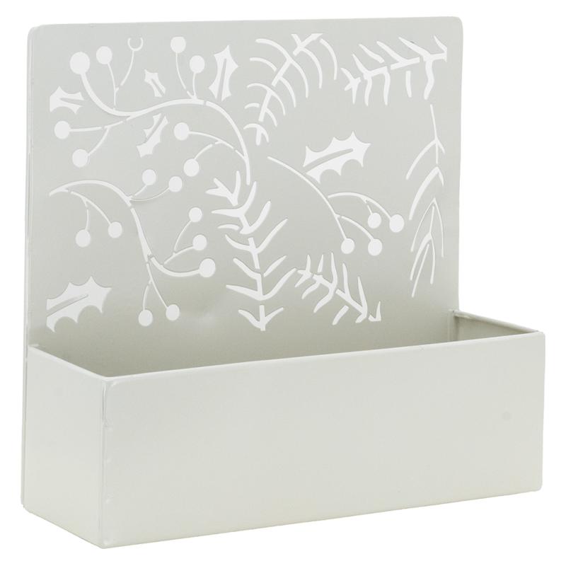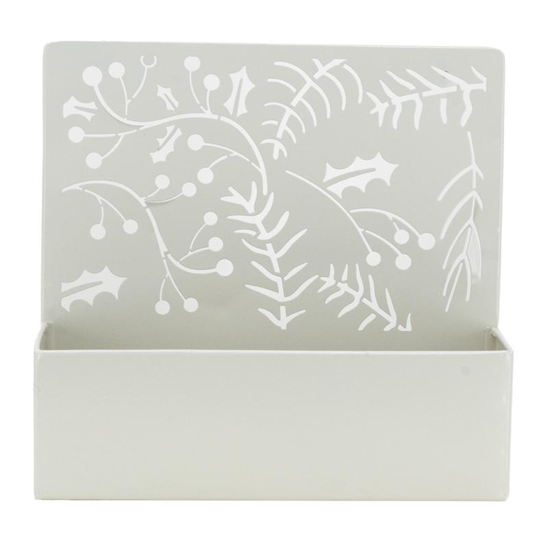 Metal planter, holly decoration.