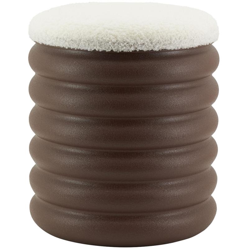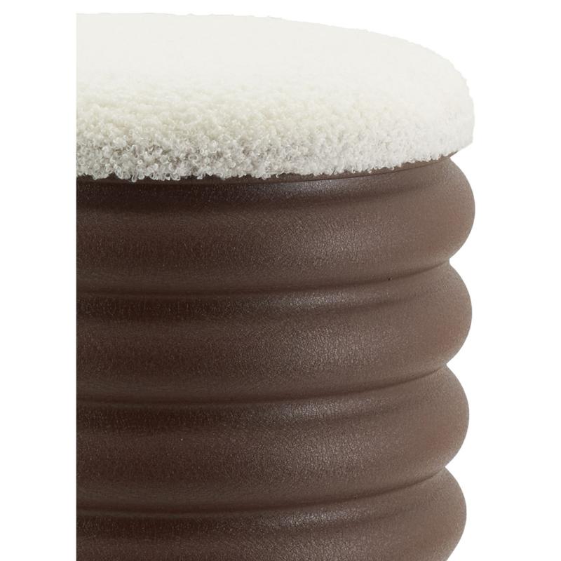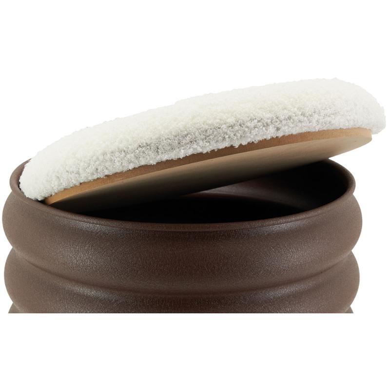 Matt chocolate-colored metal stool/storage bench with teddy fabric seat