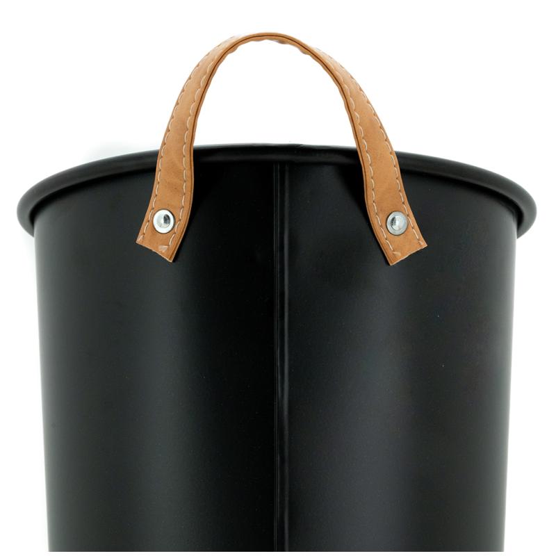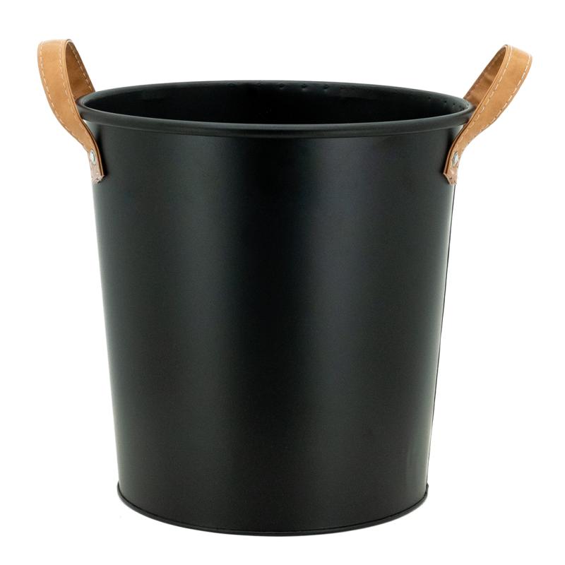 Black-tinted metal wastepaper basket. With 2 polyurethane handles.