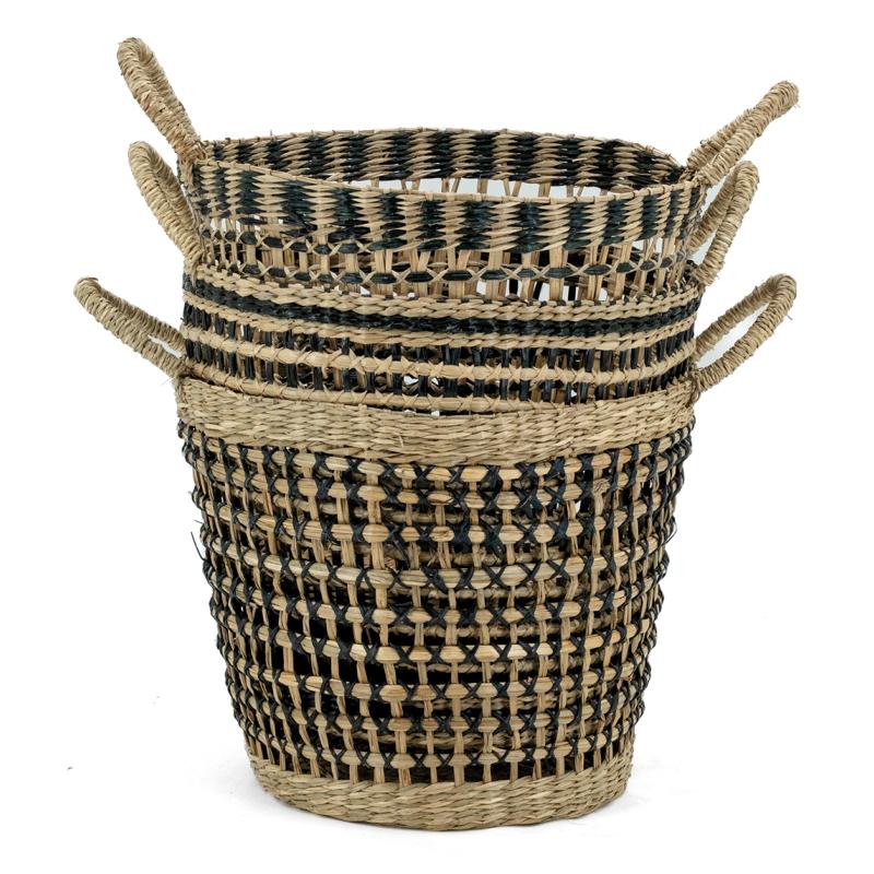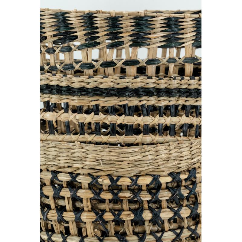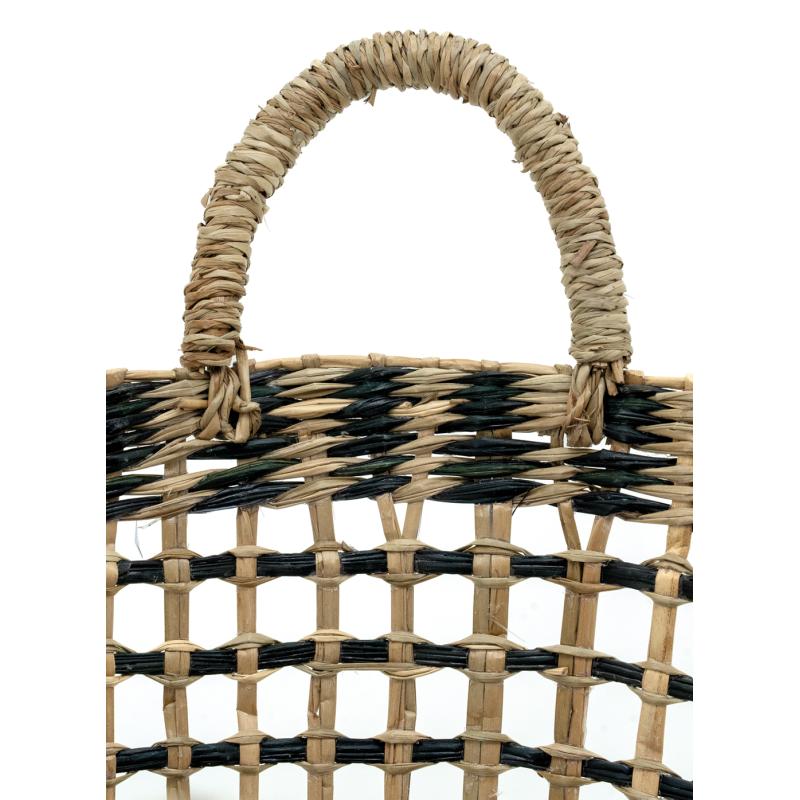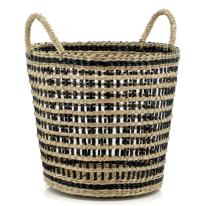 Natural seagrass basket with weaving black seagrass. 2 handles.