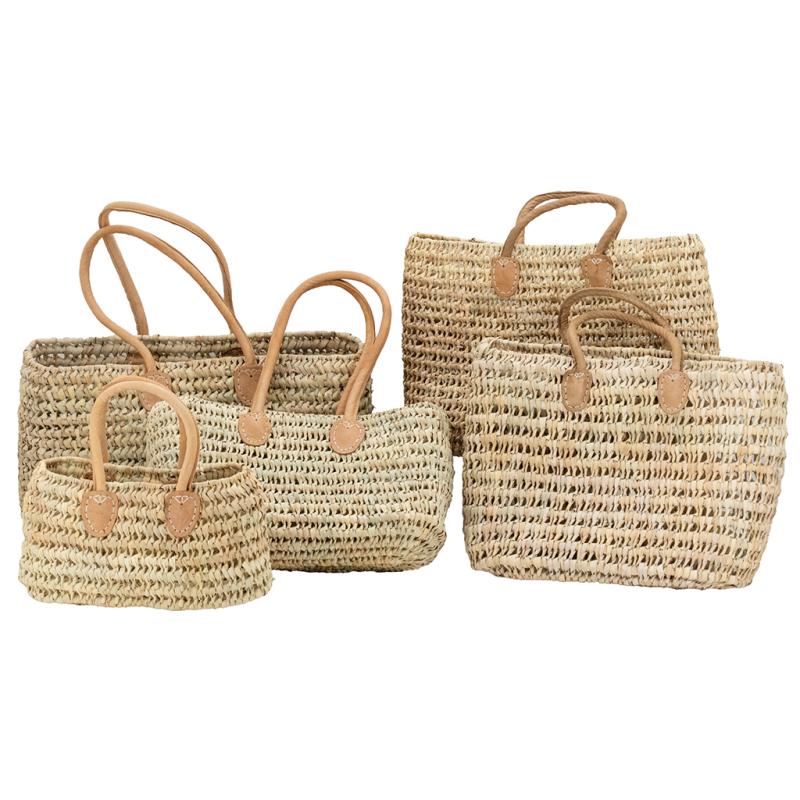 Set of 2 northern palm tree tote bags with thick oiled leather handles.