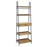Pine wood and metal shelf with 5 racks and 1 drawer. Knock-down furniture.