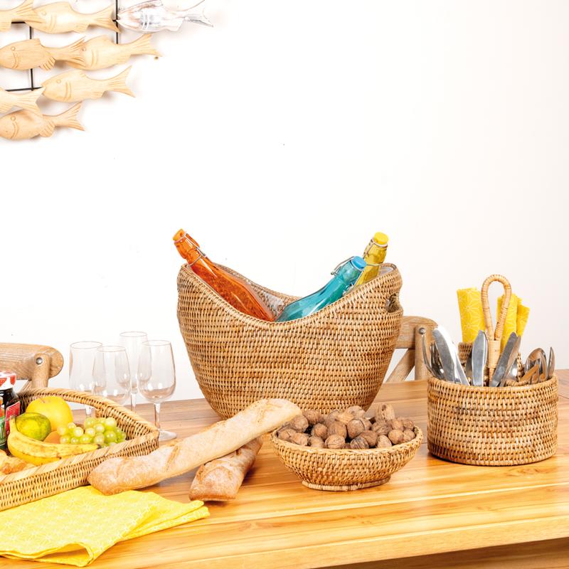 Natural rattan cutlery tray
