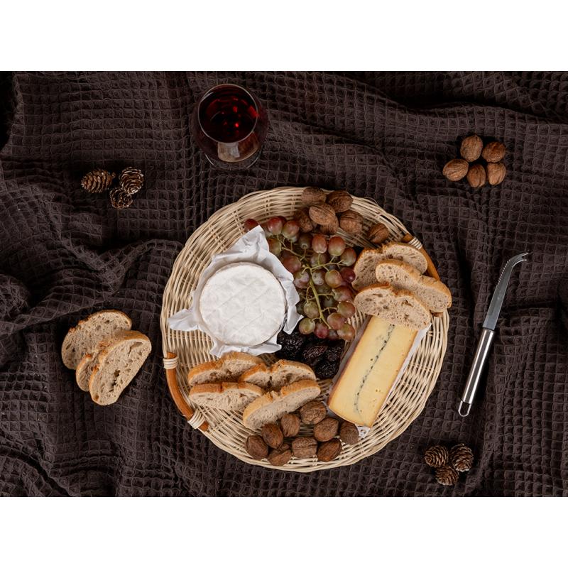 Rattan round cheese tray.