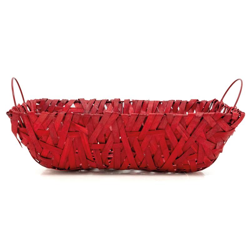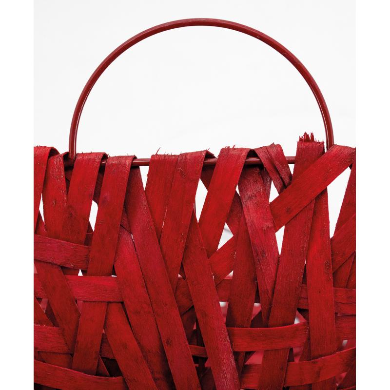 Wooden basket in red lacquered crazy wood, metal frame and 2 handles