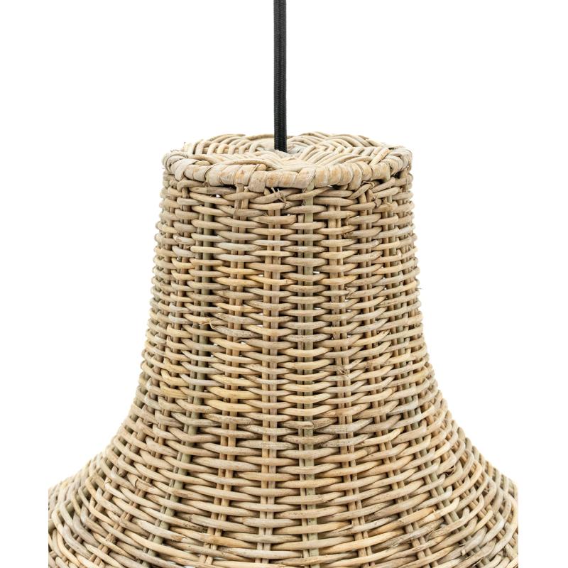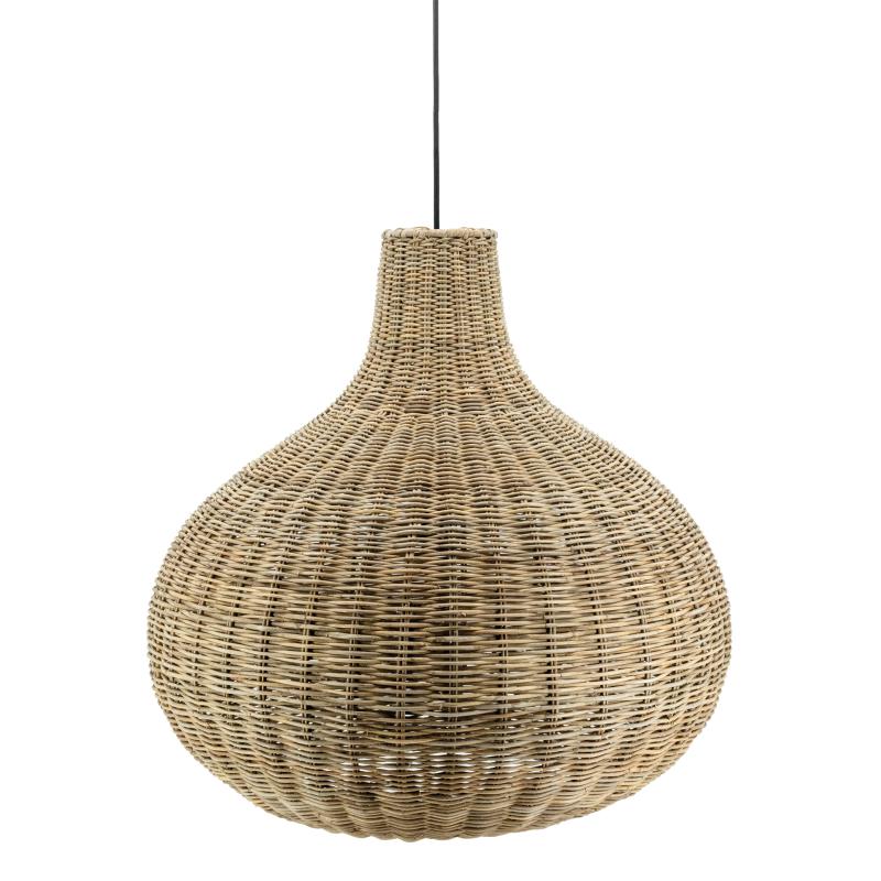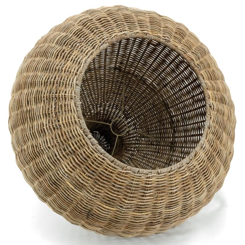 Round pulut rattan lampshade with metal frame. Electrical equipment not supplied.