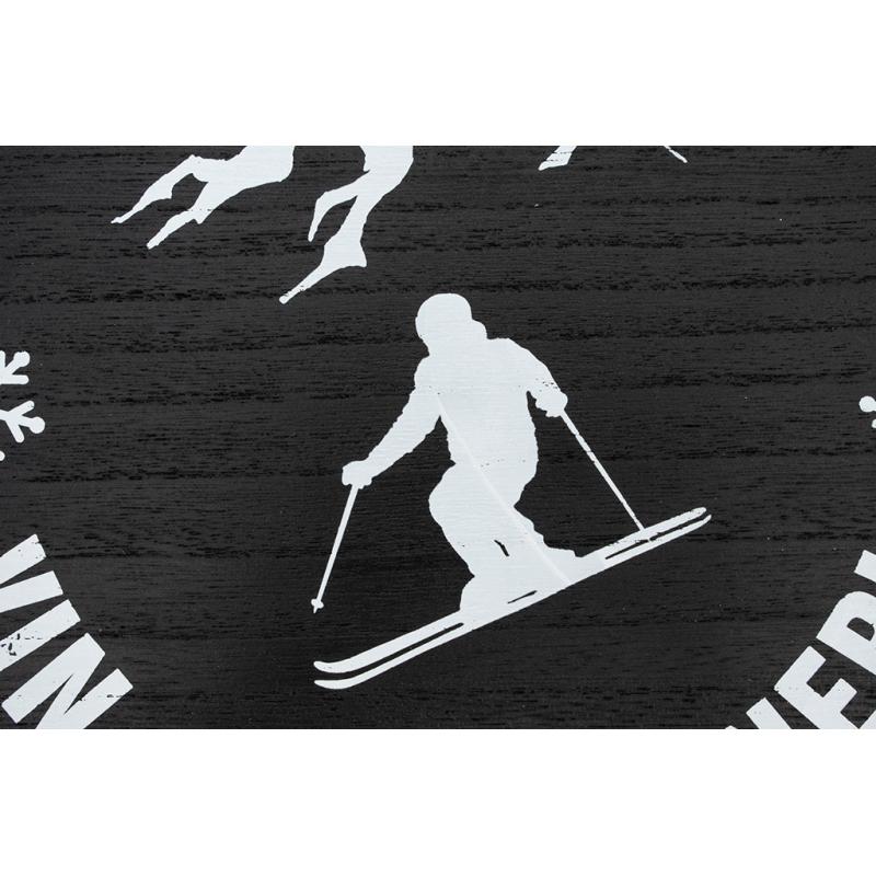 Round tray made of MDF and metal, with a skier design.