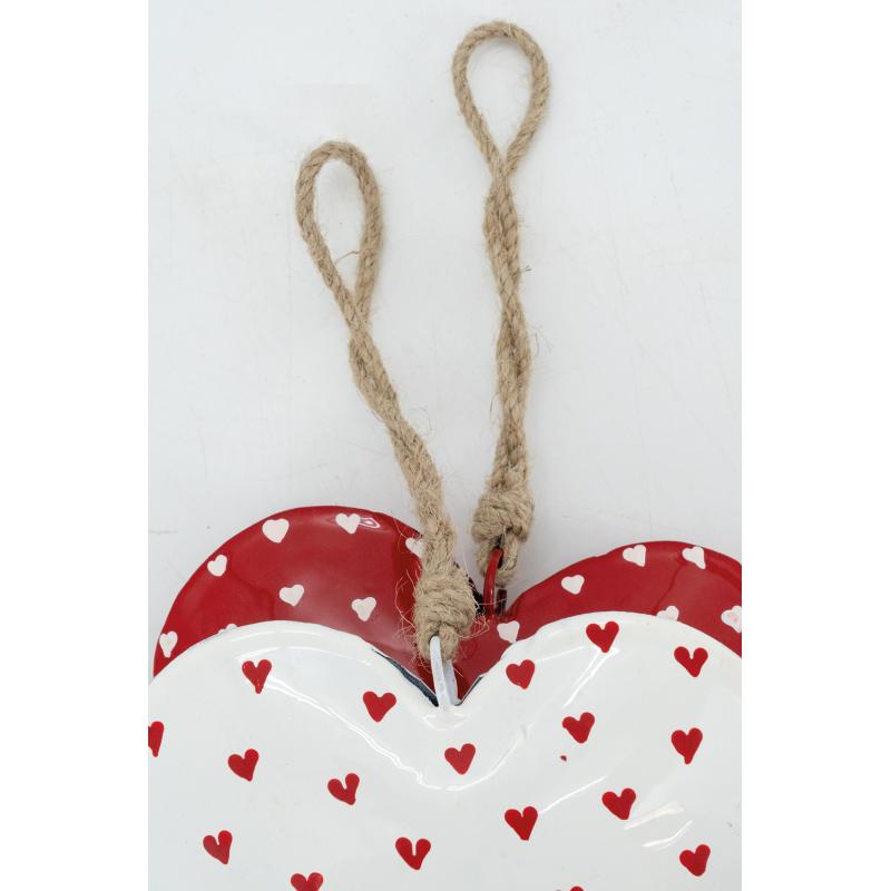 Set of 2 hanging metal hearts with jute handle