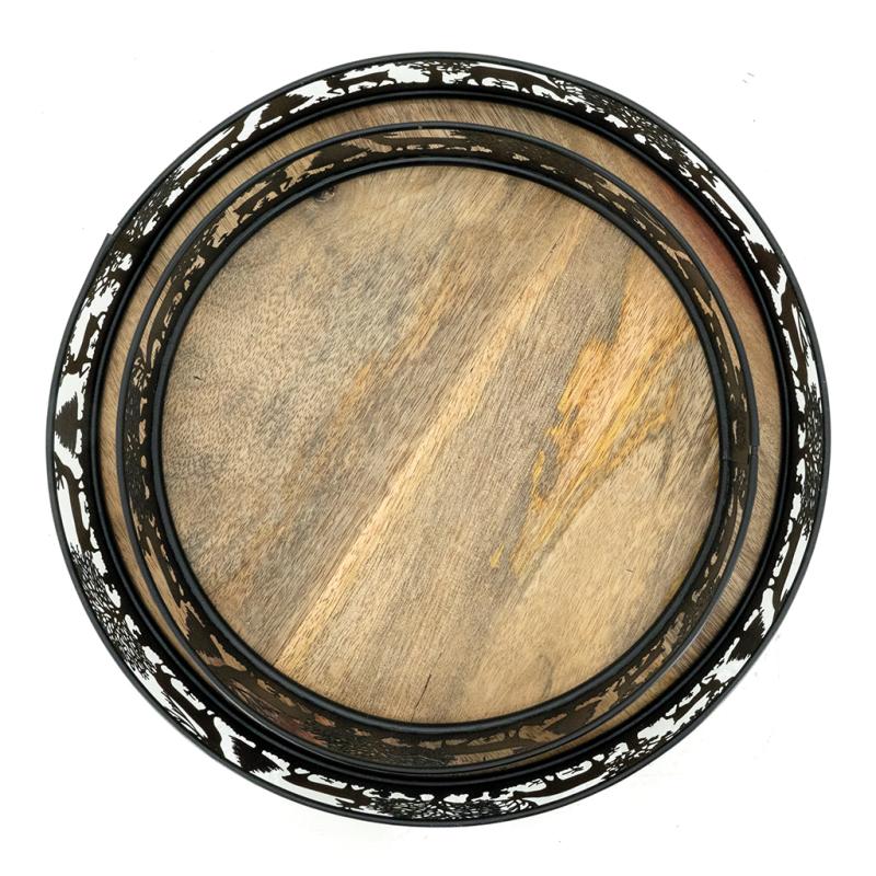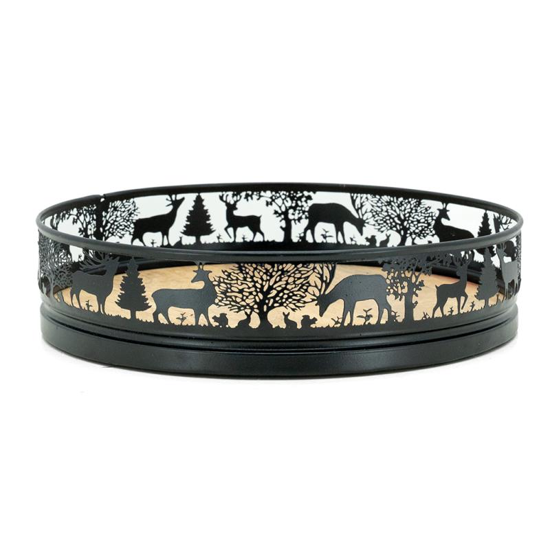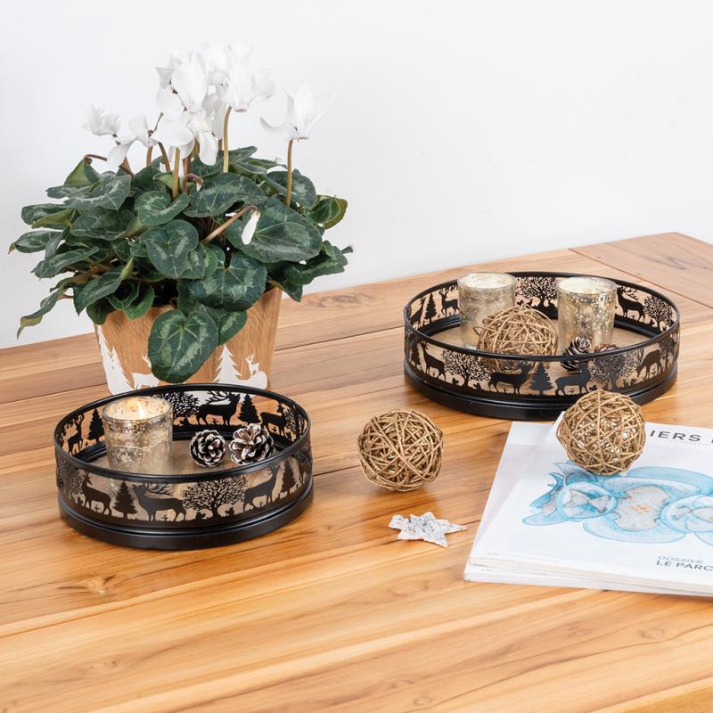 Set of 2 trays in mango wood with metal deer-shaped cut-outs