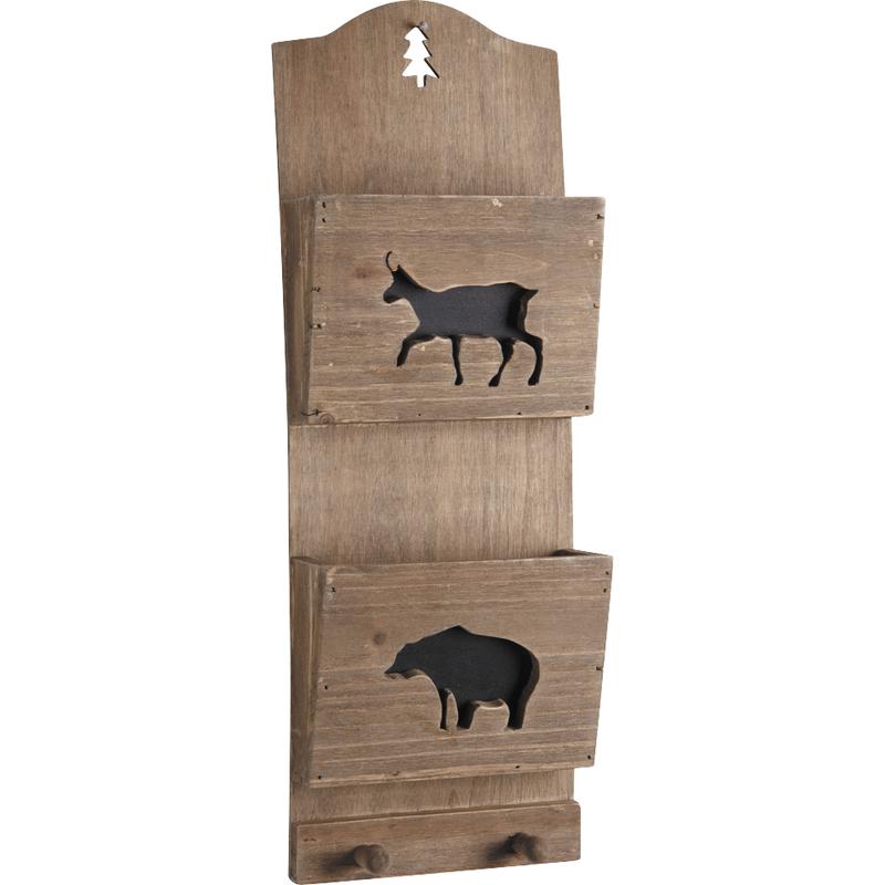 Wood and metal wall letter rack.