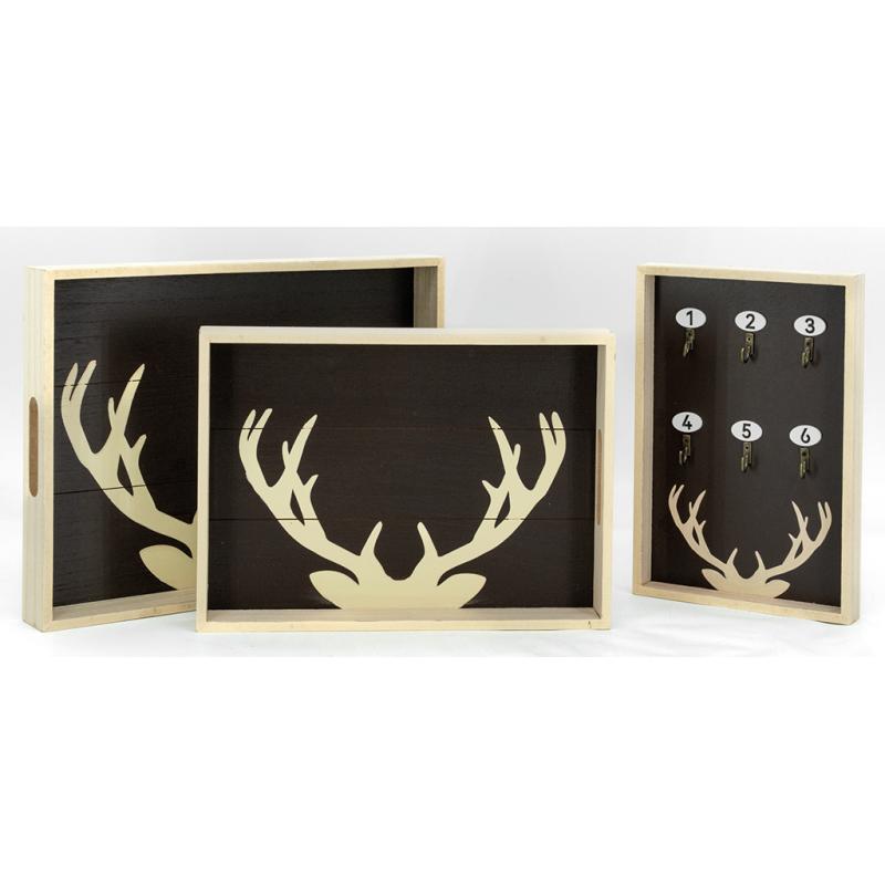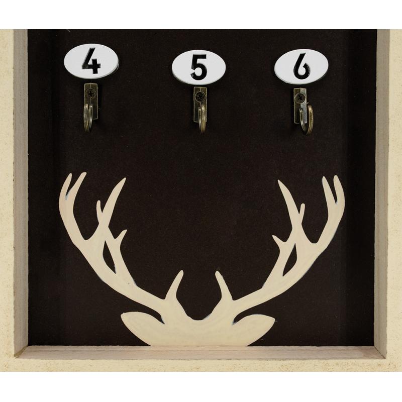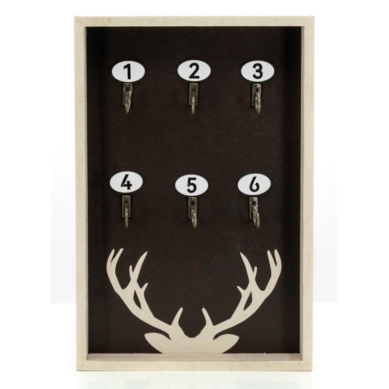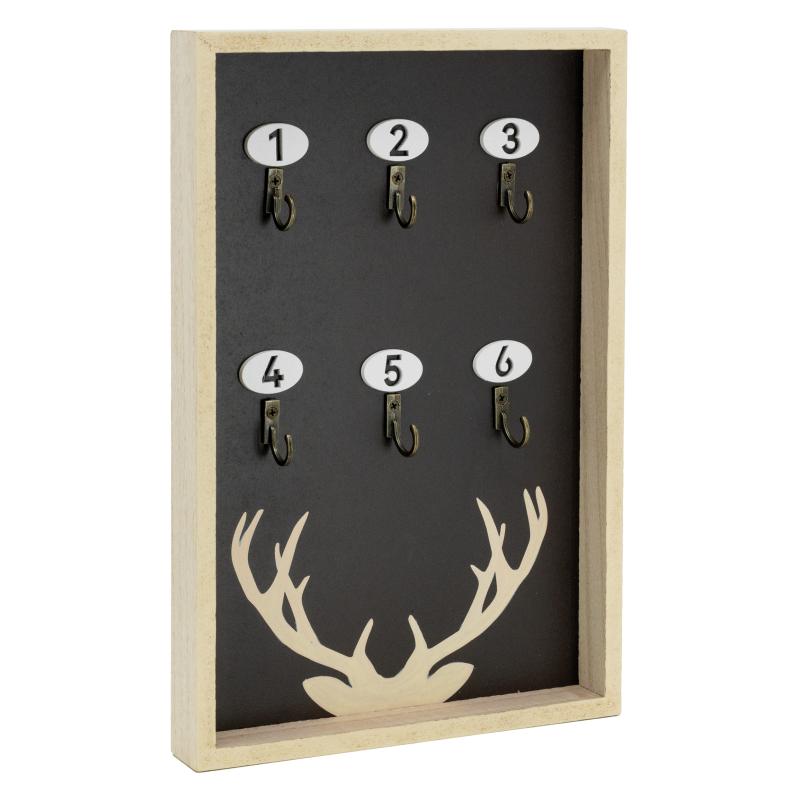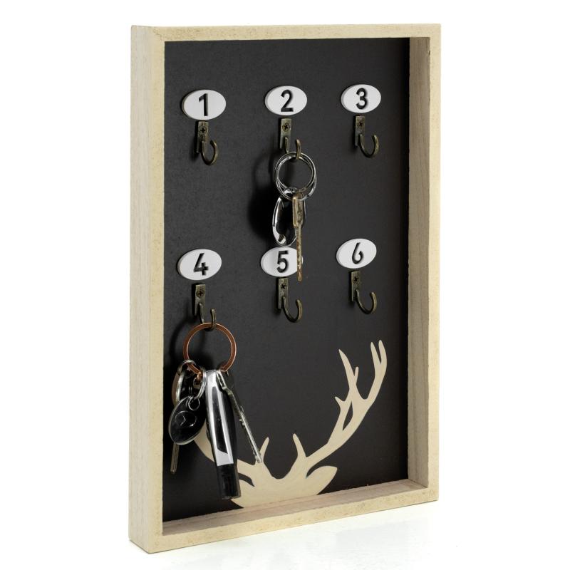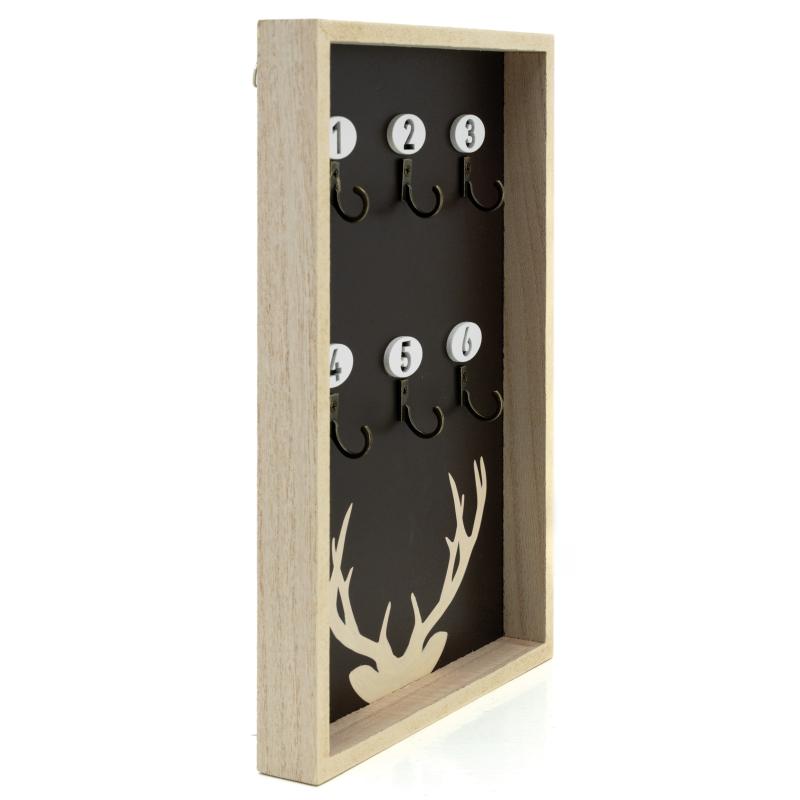 Wall-mounted key holder in MDF with paulownia veneer, mountain design. Holds 6 keys. 2 metal hooks on the back.