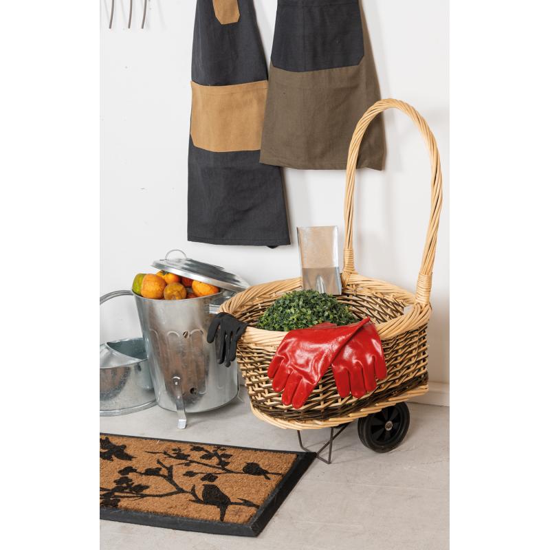 Log trolley made of unpeeled willow and white willow, wooden bottom.