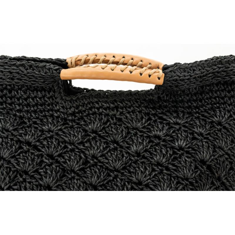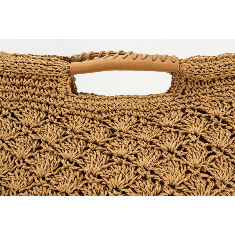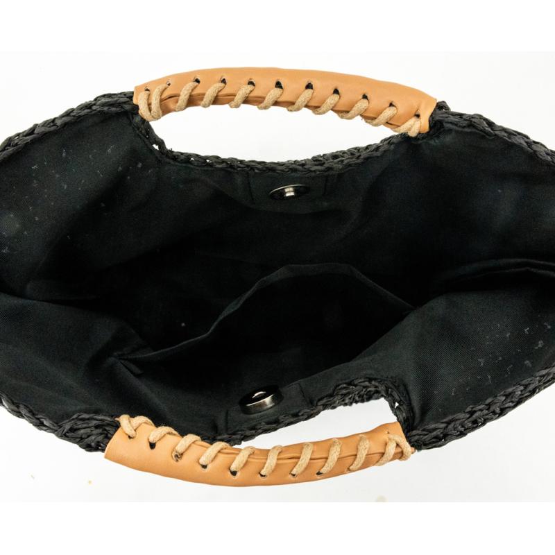 Woven rope paper bags, cotton lining, 2 assorted colors. Polyurethane handles, snap closure, 1 inside pocket.