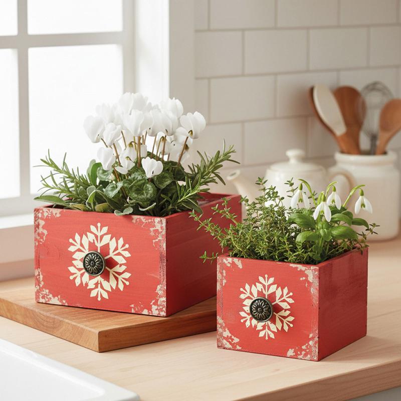 CCO 153 SP - Red stained wood baskets Snowflakes (set of 2)