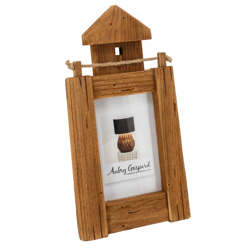 Cadre photo en paulownia naturel, en forme de phare. Pour photos 10 x 15