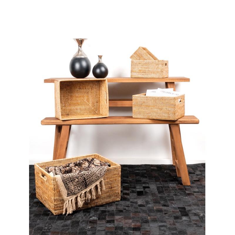 Corbeille de rangement en rotin naturel avec 2 passe-mains. Taille 5