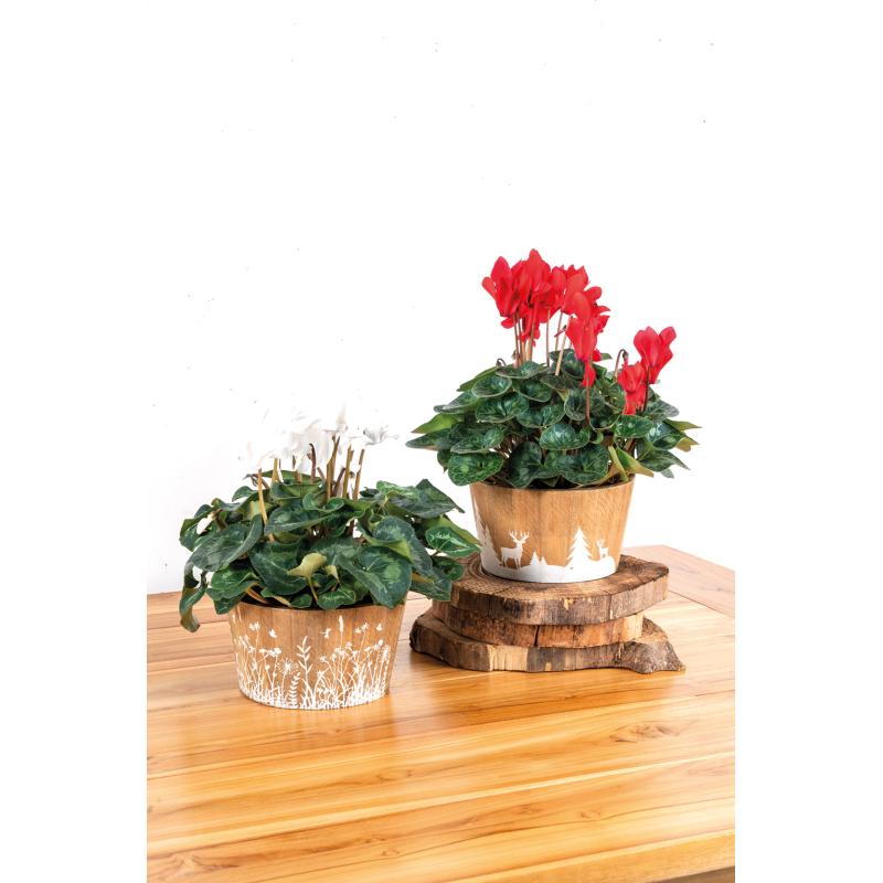 Corbeille ronde en pin, décor floral blanc Doublé plastique dur amovible.