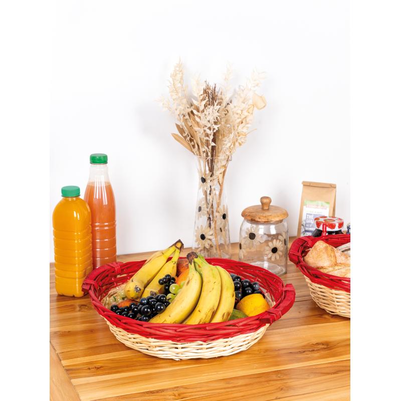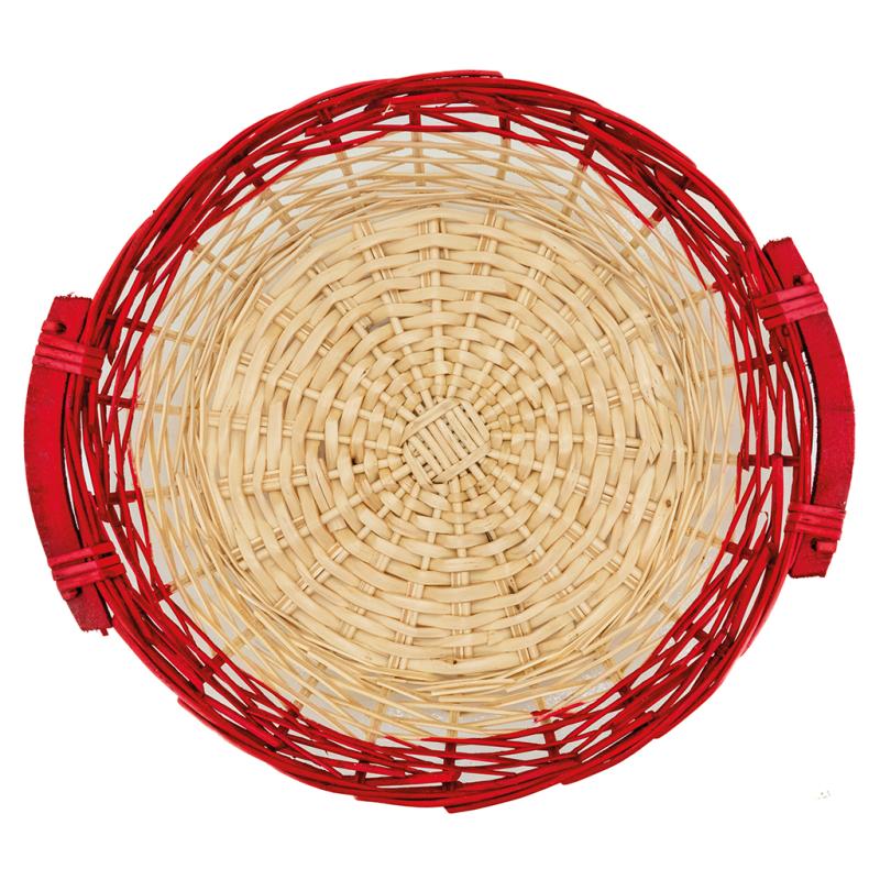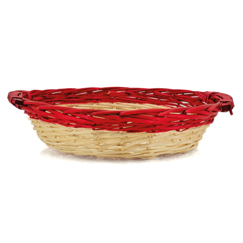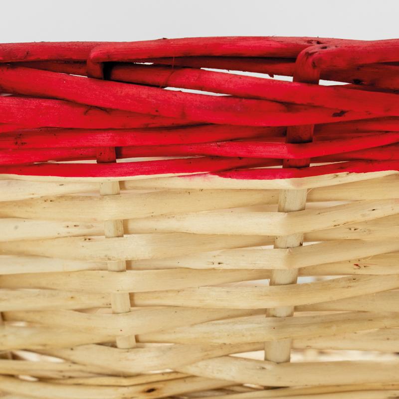 Corbeille ovale en osier fendu teinté, avec 2 poigénes bois.
