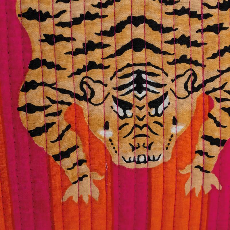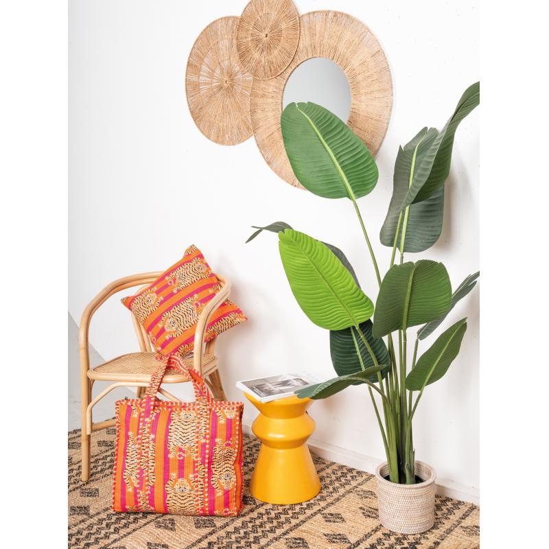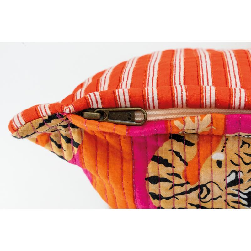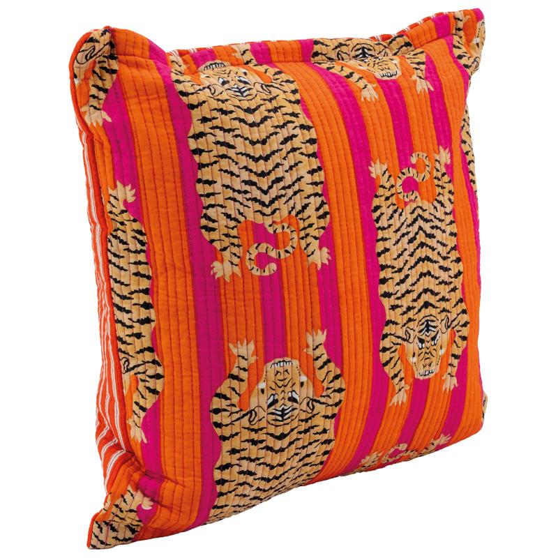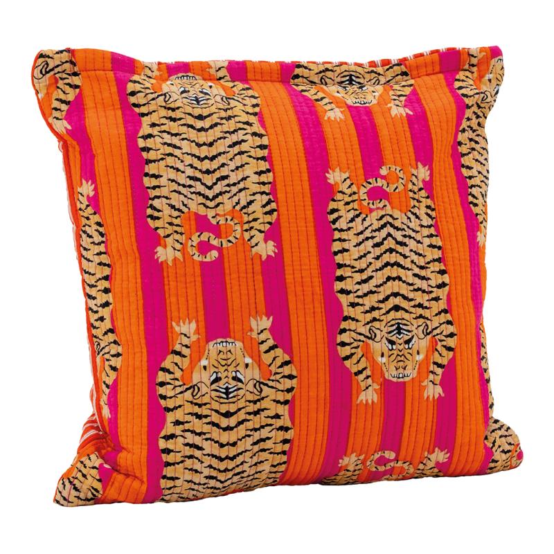 Coussin en coton orange motif tigre . Garni fibre 100% polyester Déhoussable