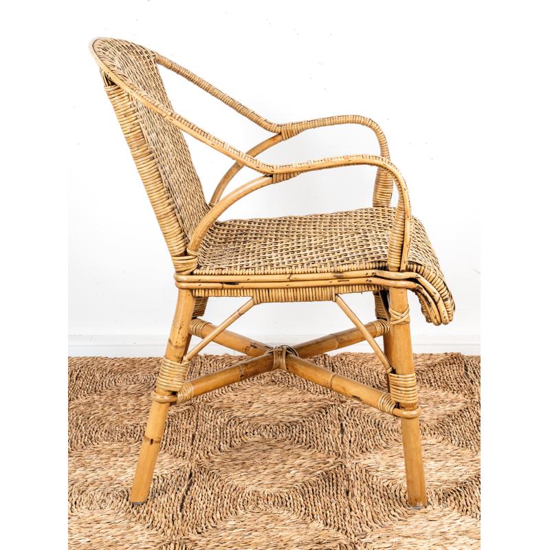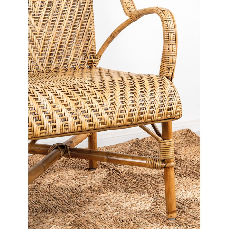 Fauteuil en manau et lame de rotin antique.