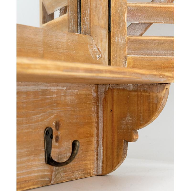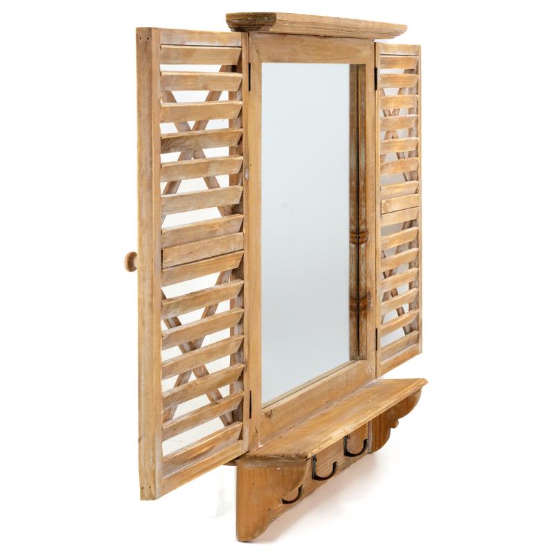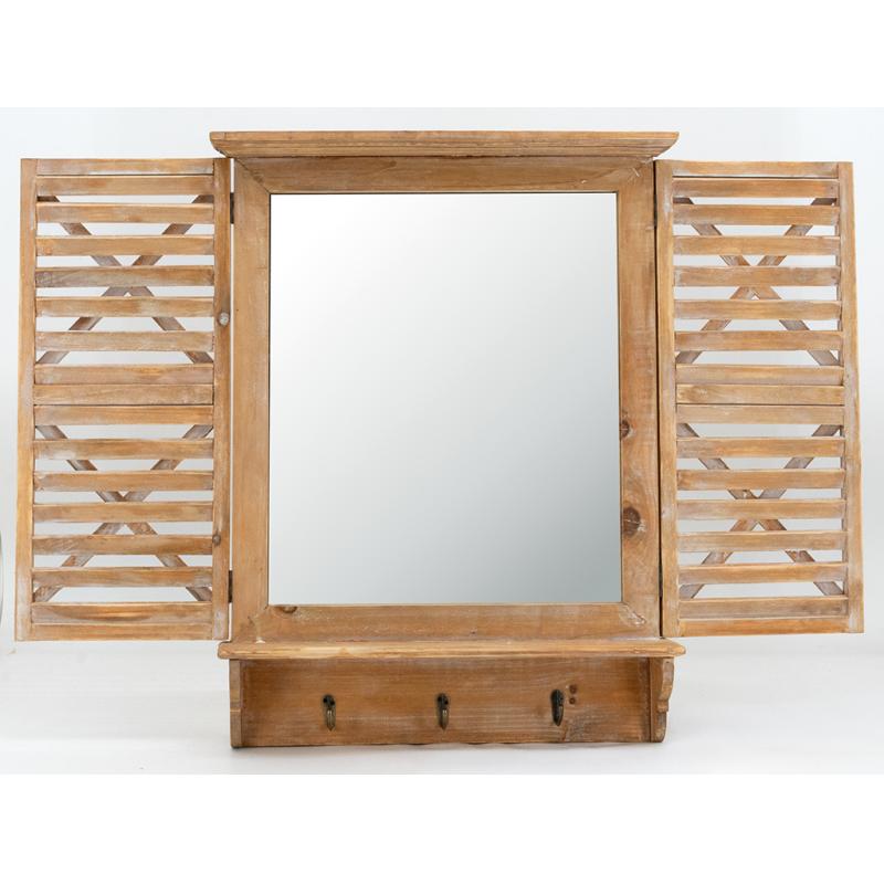 Fenêtre miroir en pin avec 3 crochets. Volets mobiles