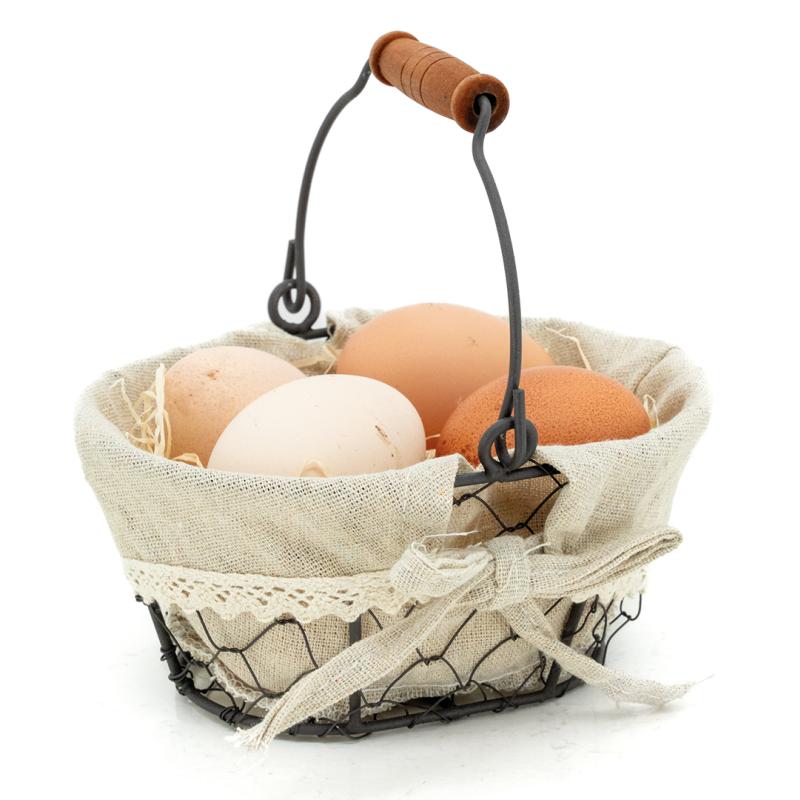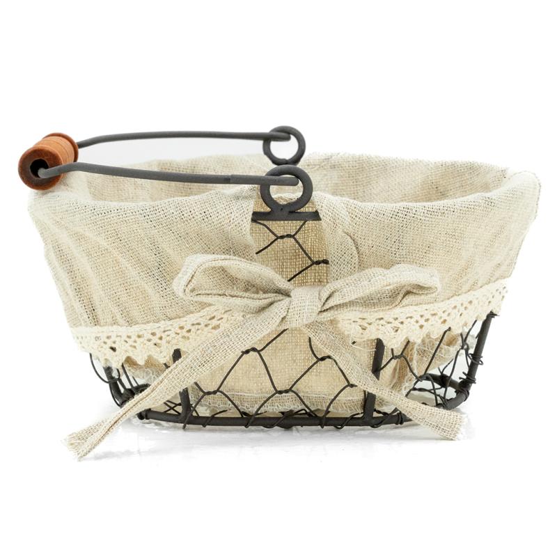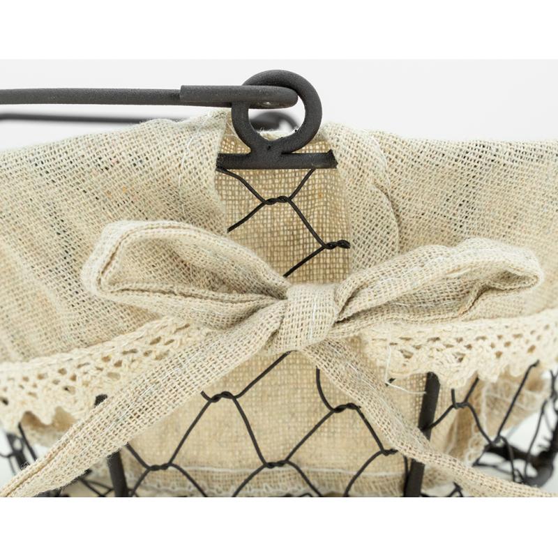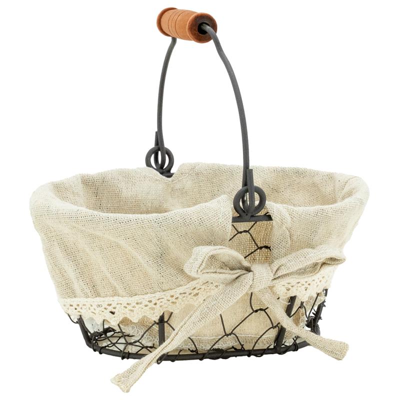 Mini panier en grillage noir, doublé jute. Anse mobile avec poignée bois.