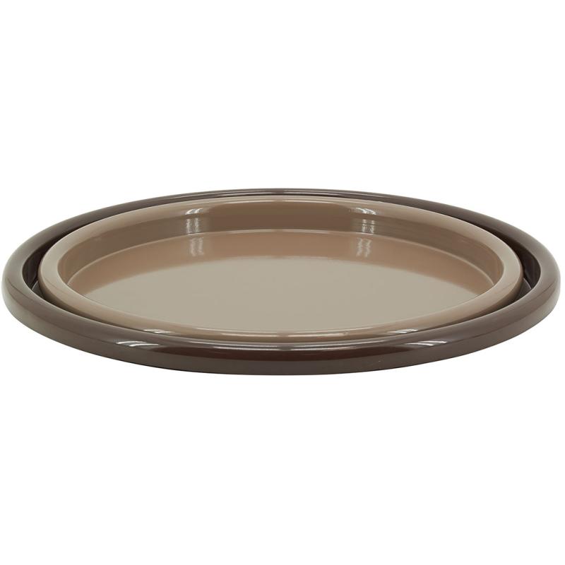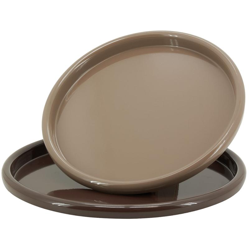 Série de 2 plateaux ronds en métal laqué Couleur brun et moka