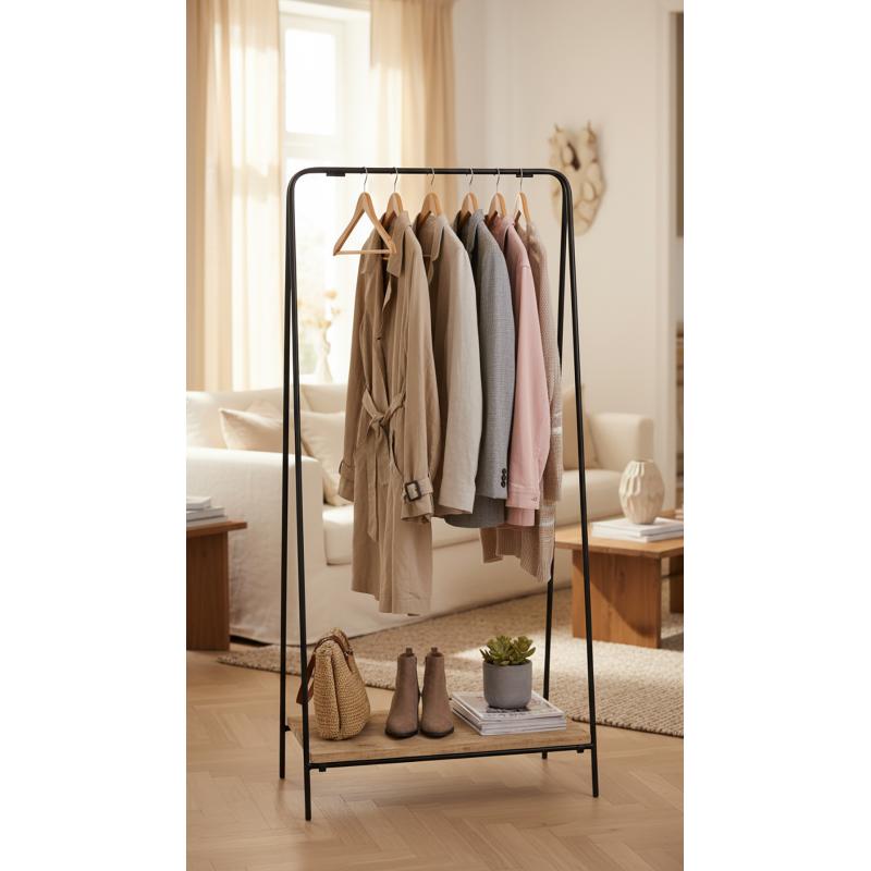 Porte-manteaux pliable en métal et bois recyclé. Prêt à monter.