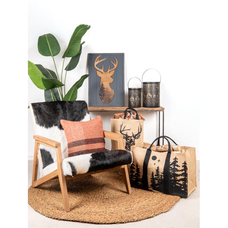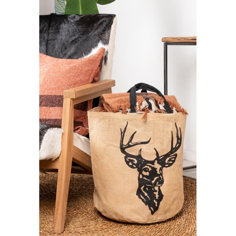 Sac à bûches en jute naturel motif cerf